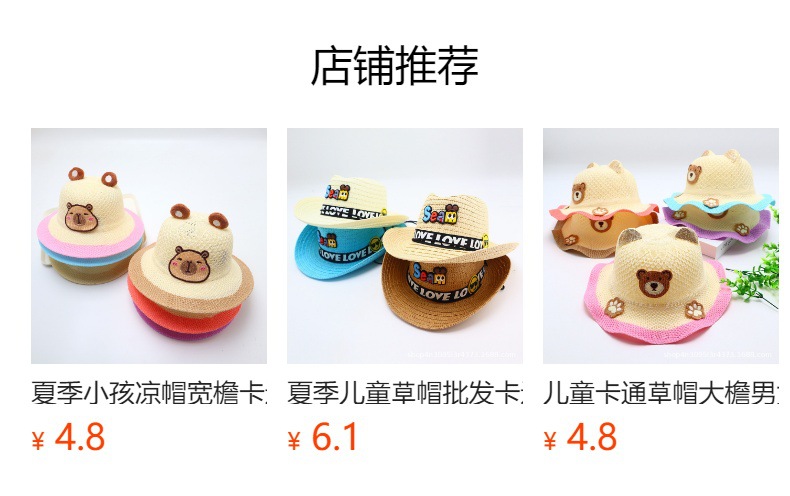 어린이용 밀짚모자, 통기성 좋은 모자, 큰 챙, 달콤하고 귀여운, 야외 휴가용, 자외선 차단, 소녀용 작은 공룡 밀짚모자스토어 가기