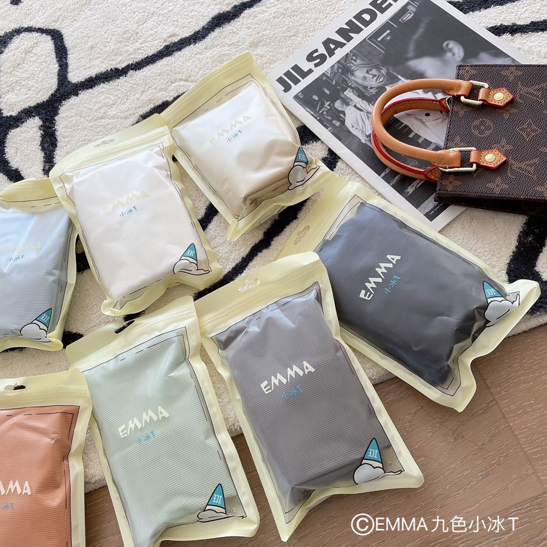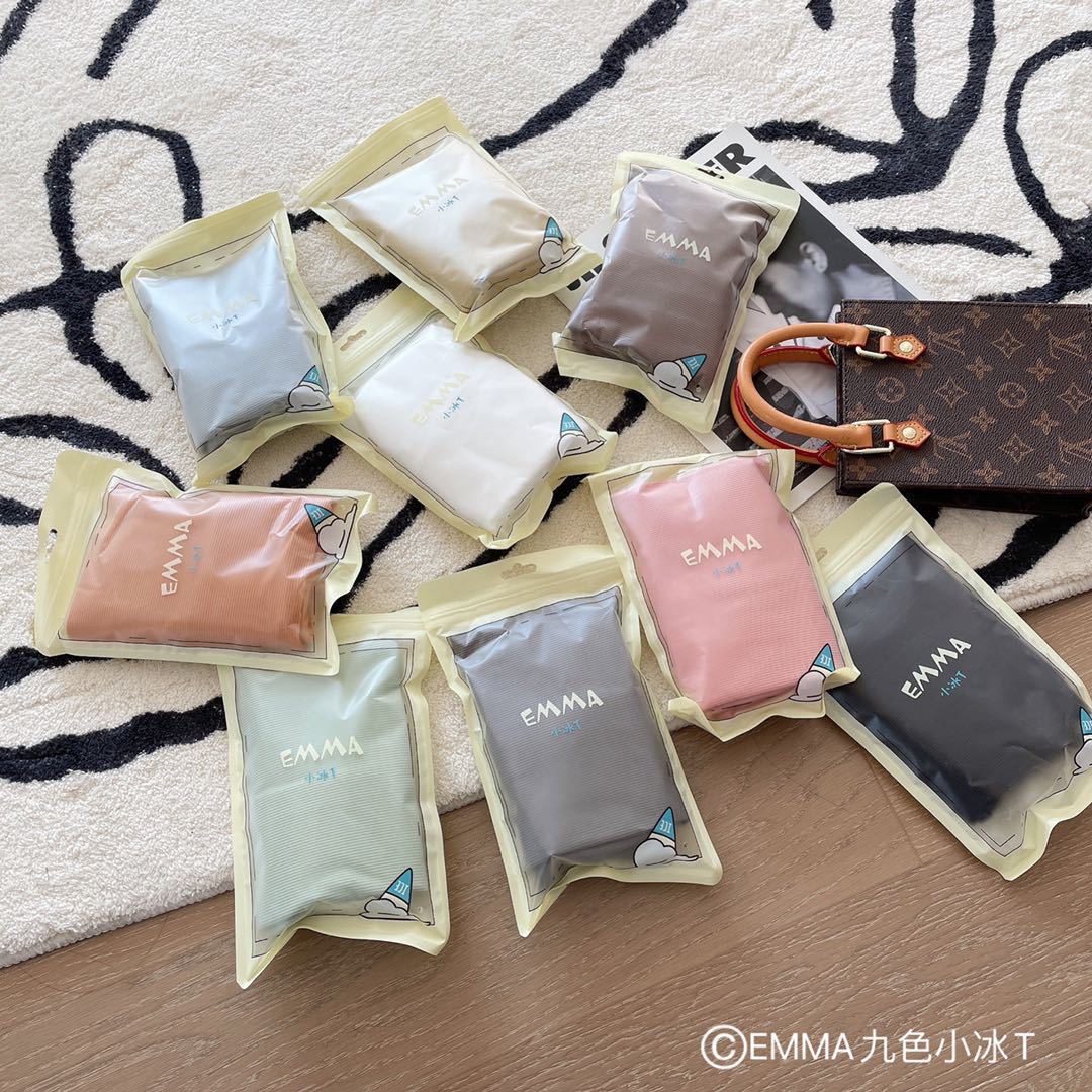 2025 여름 신작 EMMA 9 색 스몰 아이스 티셔츠 루즈 솔리드 컬러 탑 인 트렌디 라운드 넥 티셔츠 여성 반팔