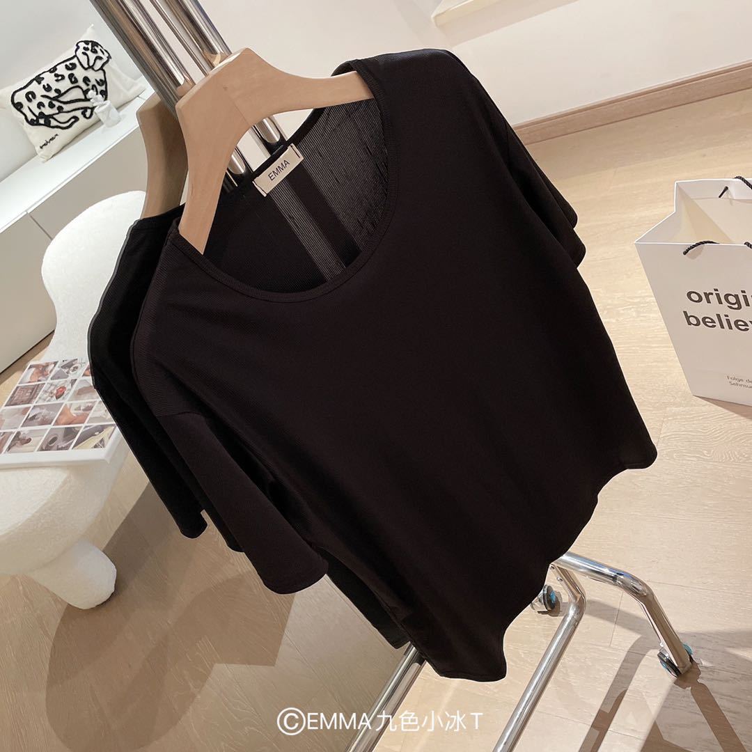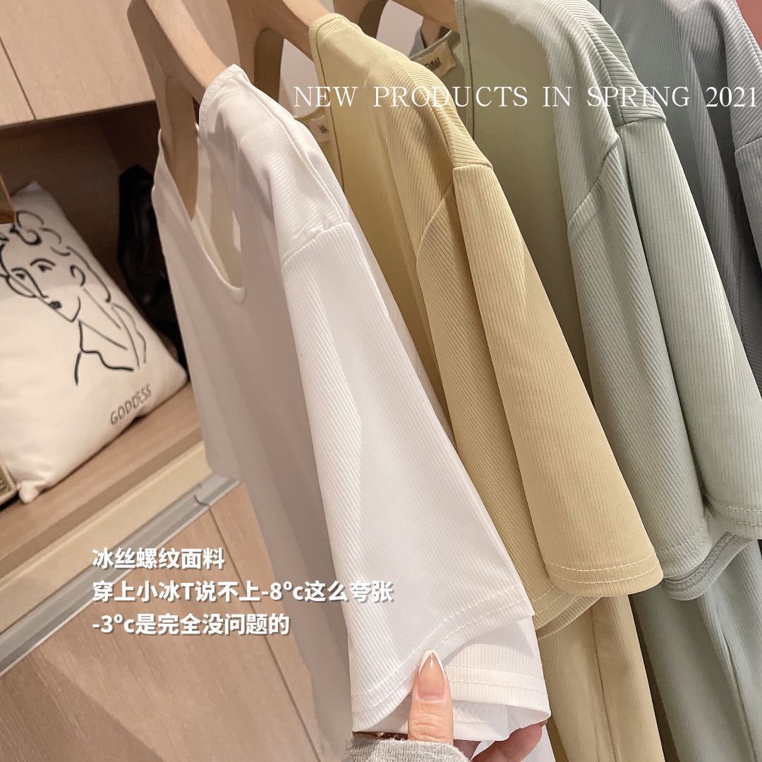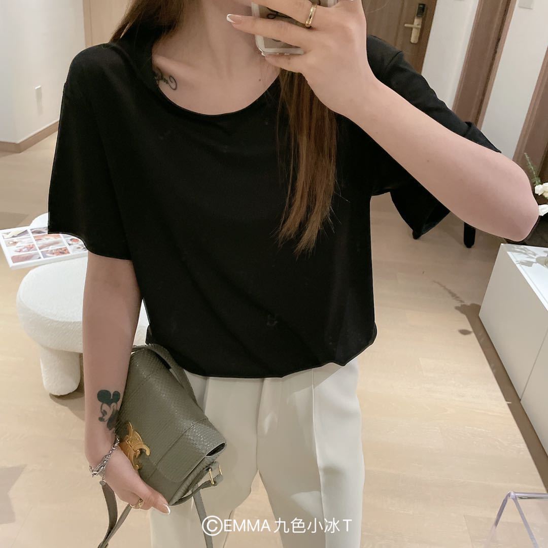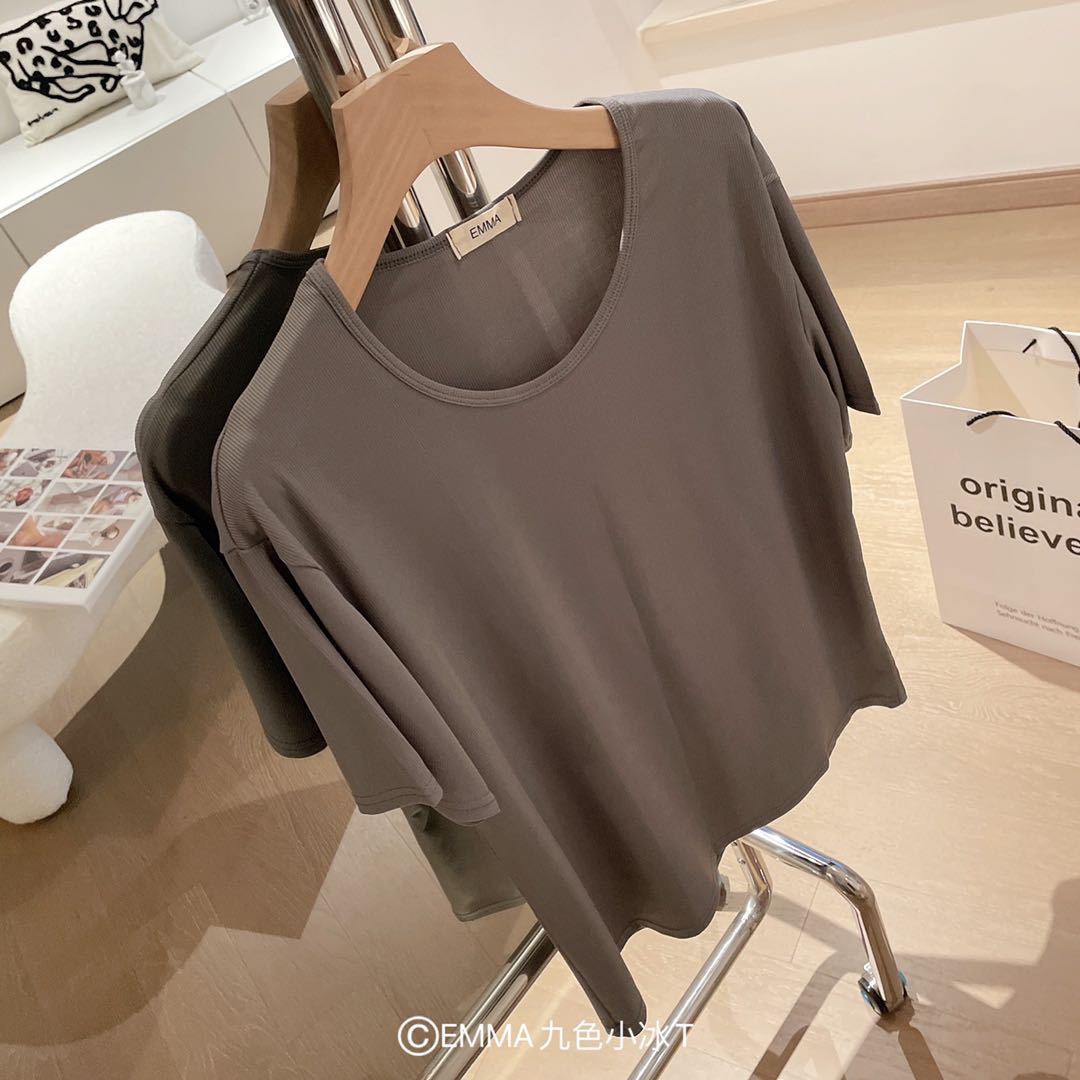 2025 여름 신작 EMMA 9 색 스몰 아이스 티셔츠 루즈 솔리드 컬러 탑 인 트렌디 라운드 넥 티셔츠 여성 반팔스토어 가기