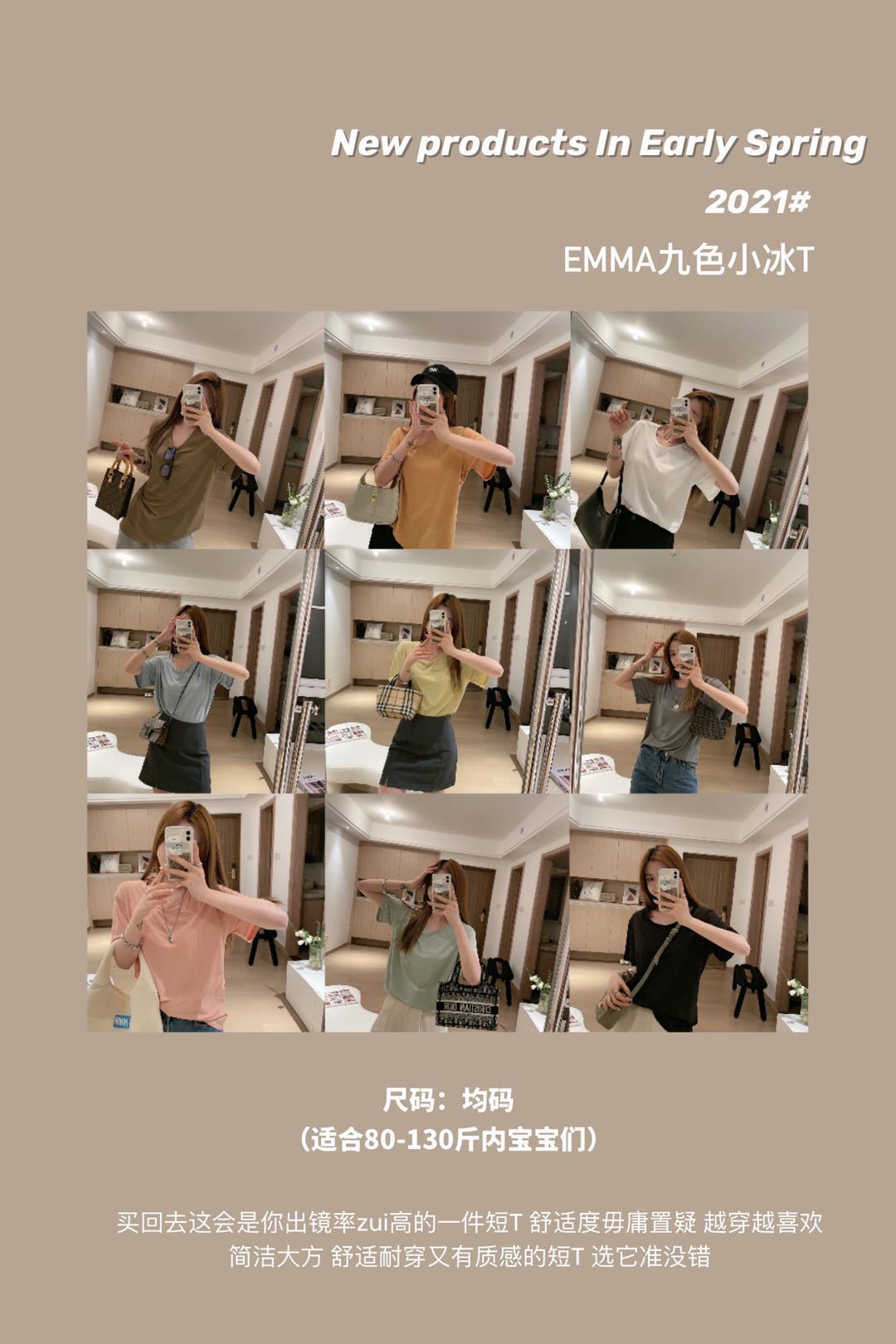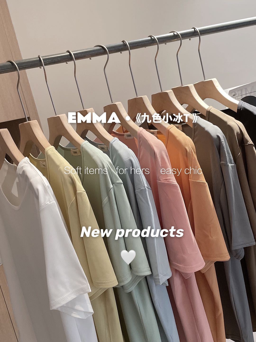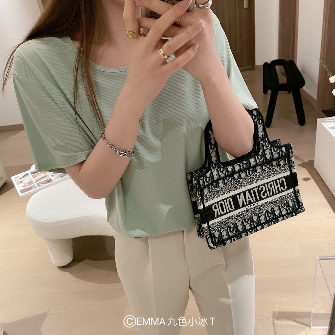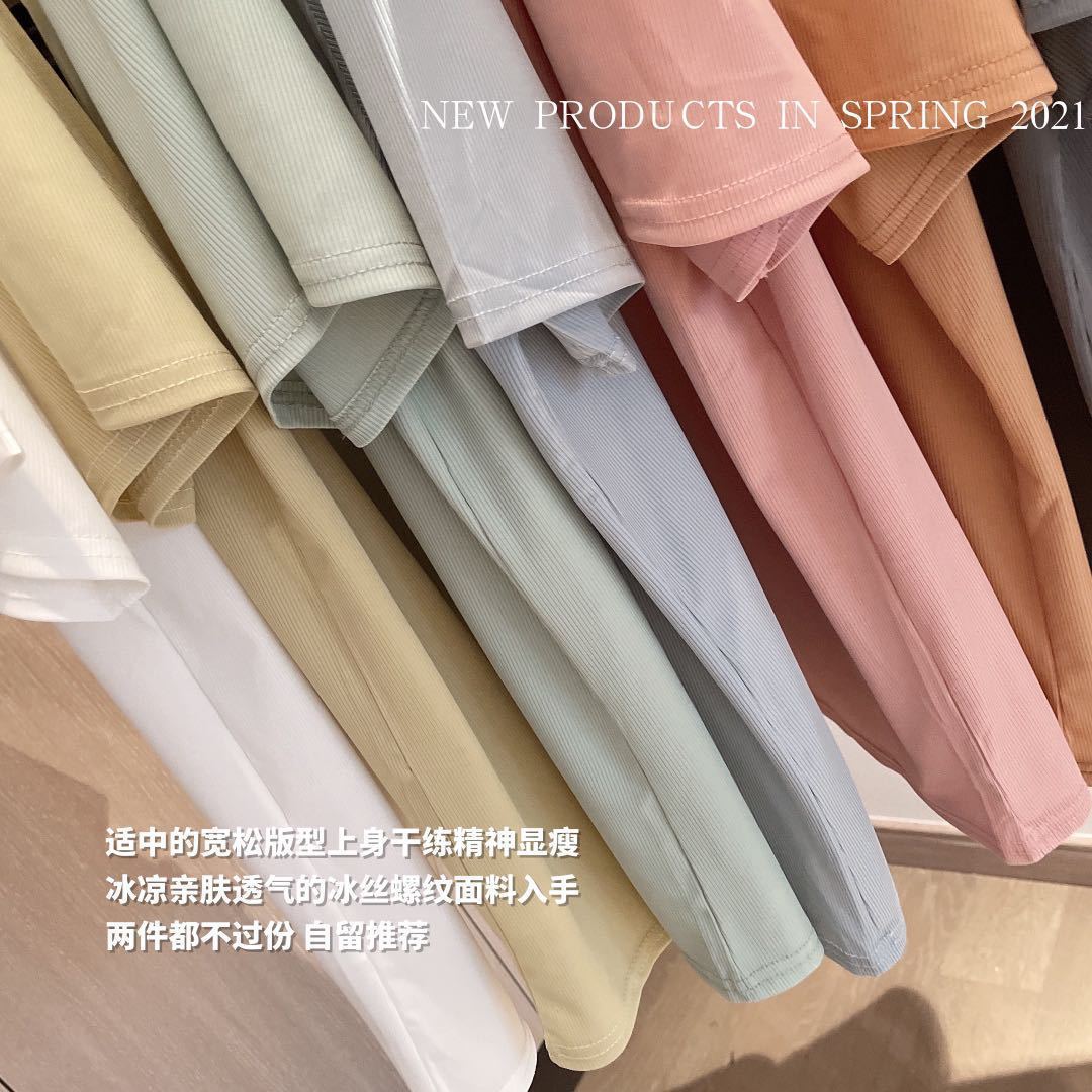 2025 여름 신작 EMMA 9 색 스몰 아이스 티셔츠 루즈 솔리드 컬러 탑 인 트렌디 라운드 넥 티셔츠 여성 반팔스토어 가기