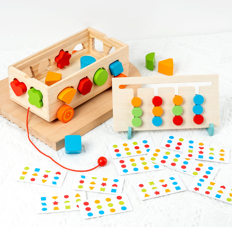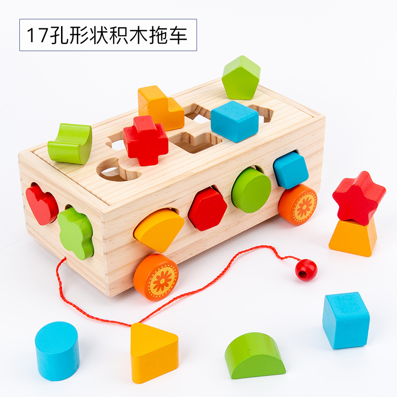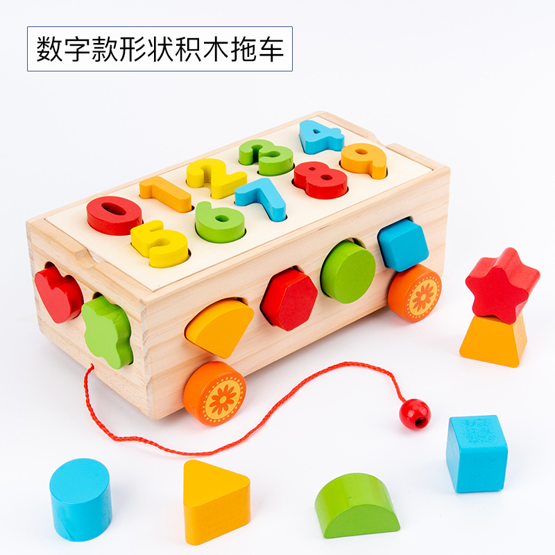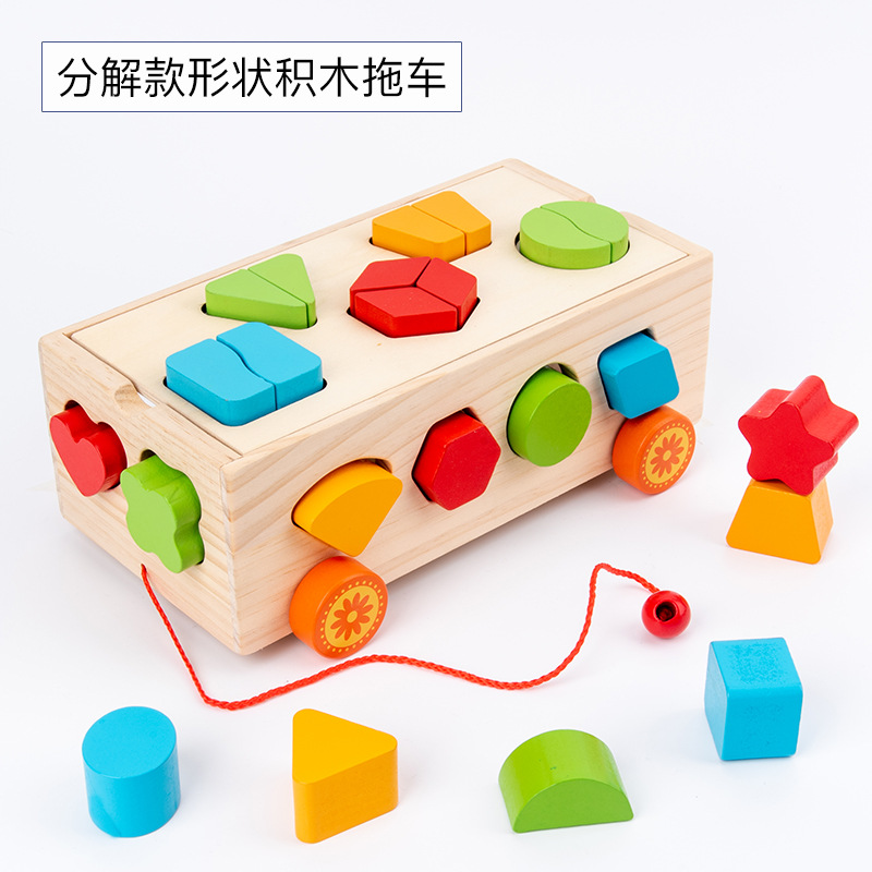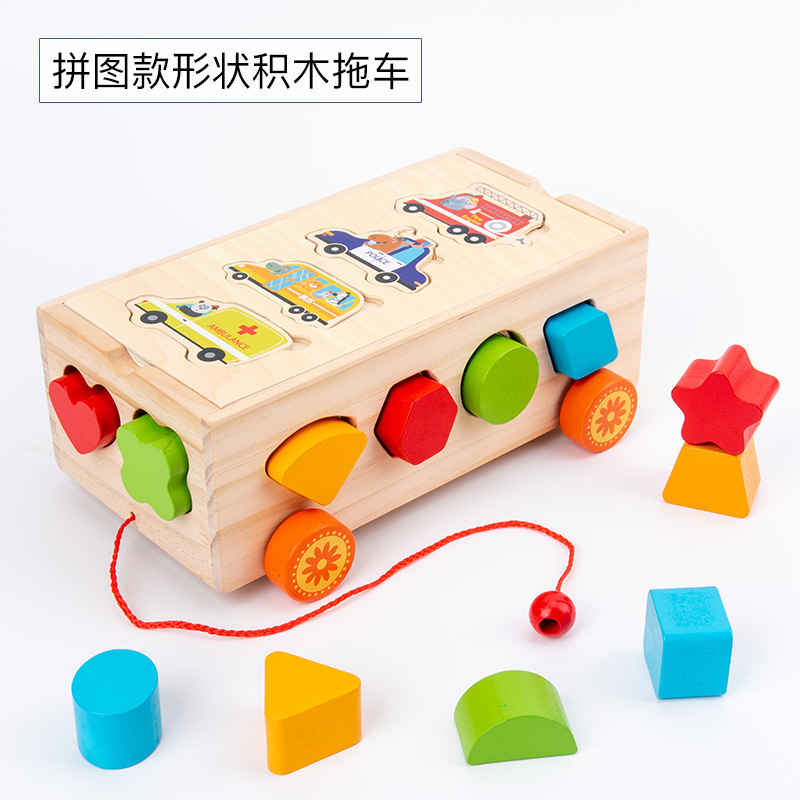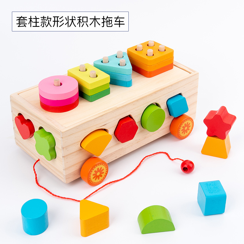 몬테소리 어린이 과일 노크 세트 기둥 견인 빌딩 블록 자동차 기하학적 모양 트레일러인지 분류 지능 상자스토어 가기
