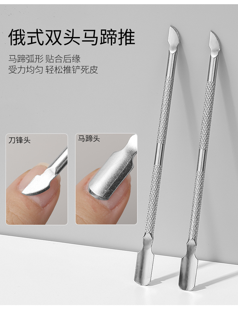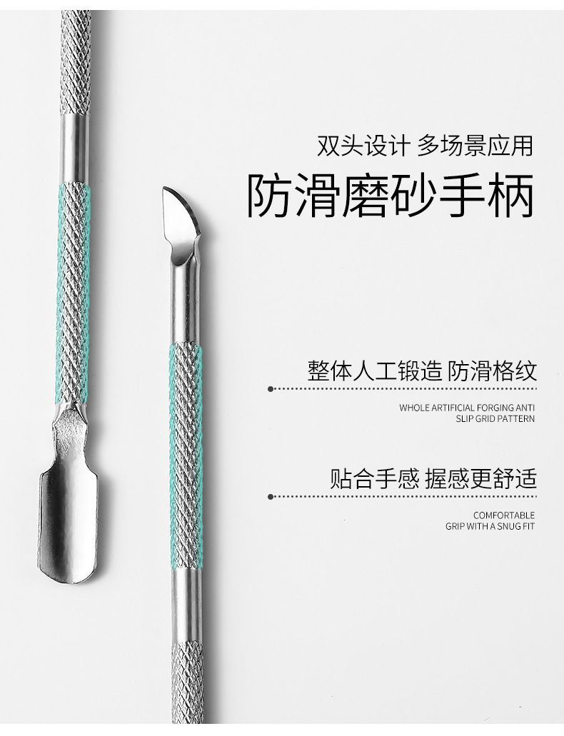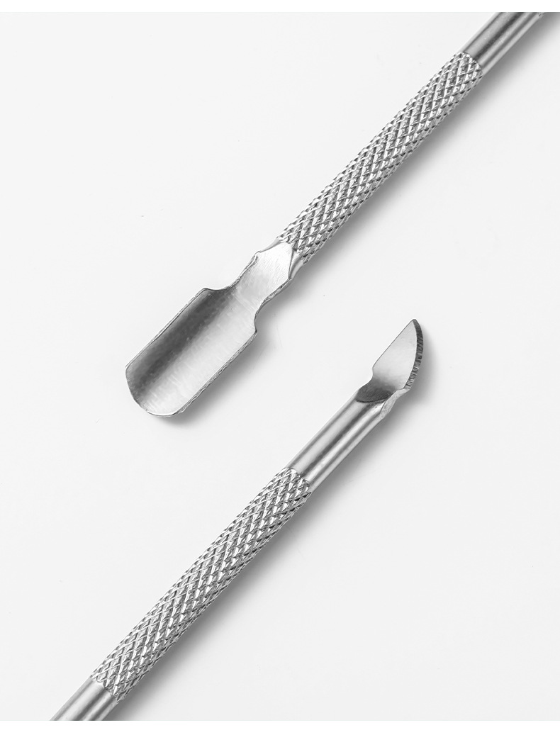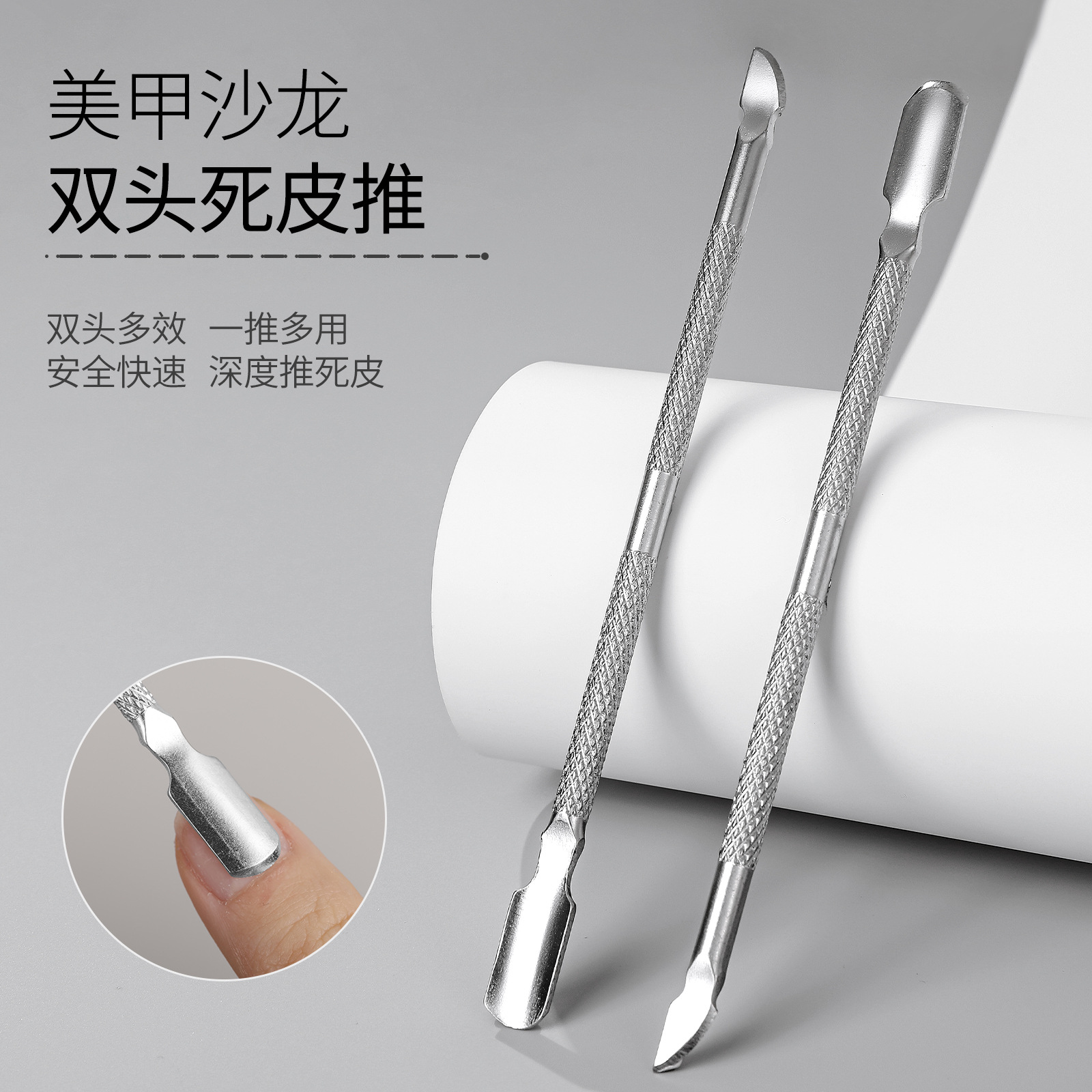 네일 아트 스틸 푸시 스테인레스 스틸 하이라이트 더블 헤드 이중 사용 각질 제거 손 제거 갑옷 각질 제거 네일 아트 샵을위한 쉬운 컷스토어 가기