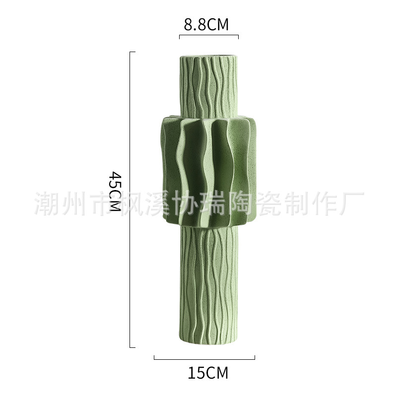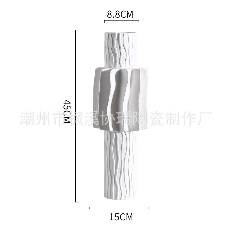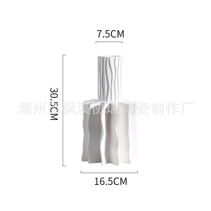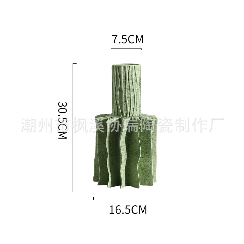북유럽 인 크리 에이 티브 라이트 럭셔리 세라믹 주름진 꽃병 간단한 거실 꽃꽂이 입구 예술 홈 장식 장식품