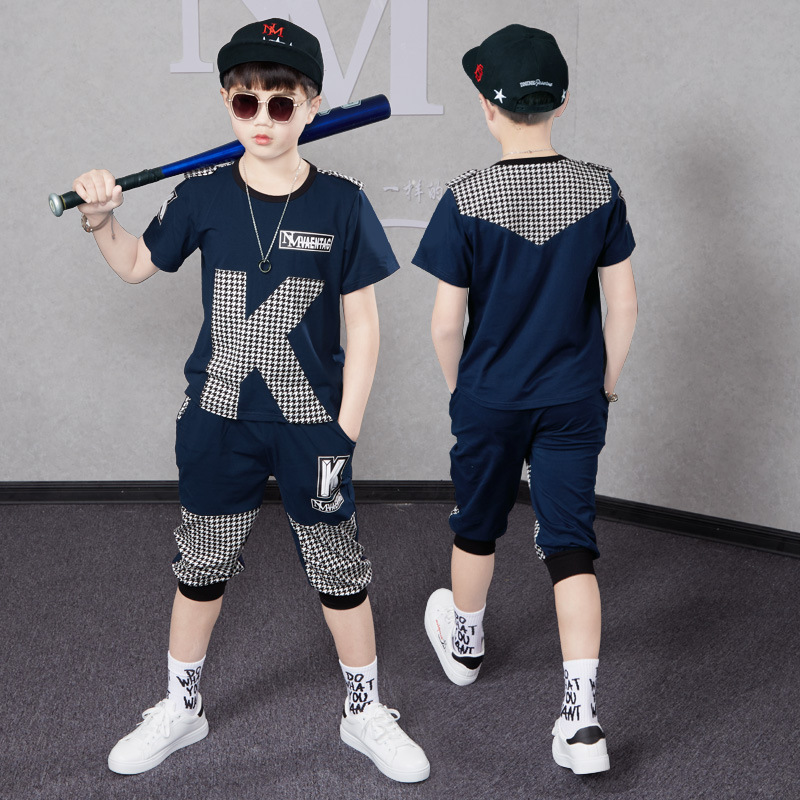 남아 여름 의류 세트 2024 신상 한국 스타일 멋지고 세련된 중대형 어린이 캐주얼 스포츠 투피스 세트 어린이 트렌디 의류스토어 가기