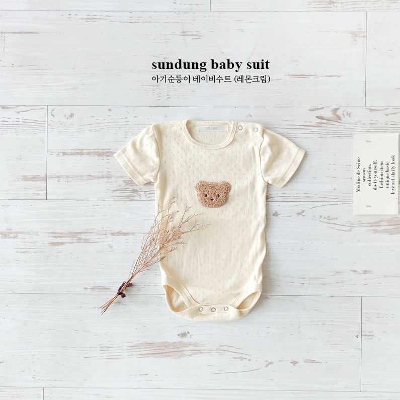 여름 한국식 아기옷, A급 크롤링복, 귀여운 만화곰 점프수트, 영유아용 반팔옷스토어 가기
