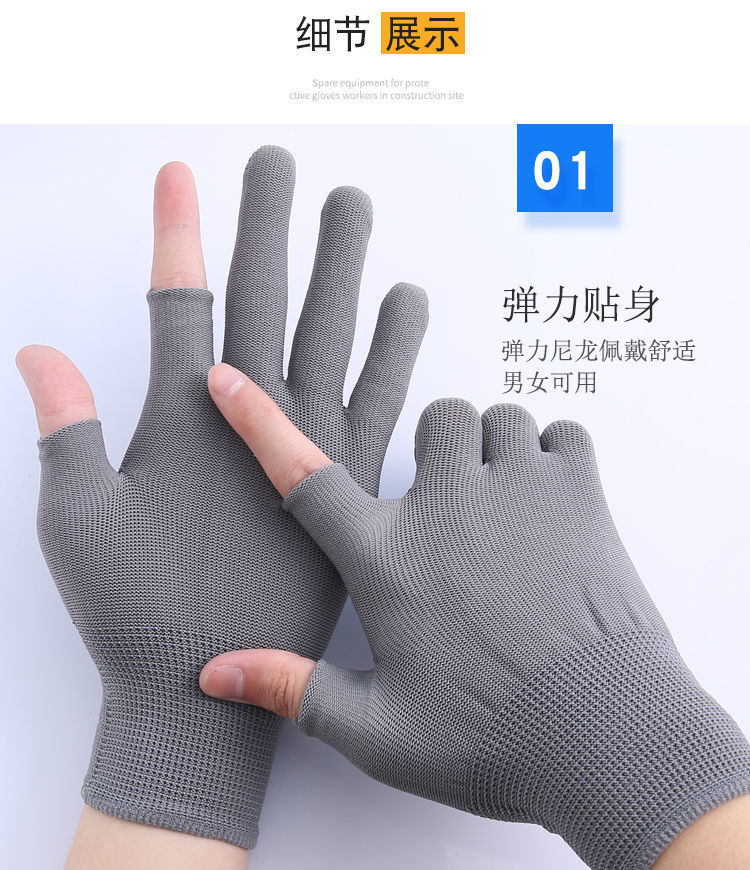 얇은 깨진 이슬 두 손가락 나일론 노동 장갑 작업 도매 피킹 보호 남성과 여성의 작업 전자 분류