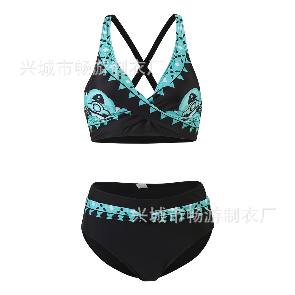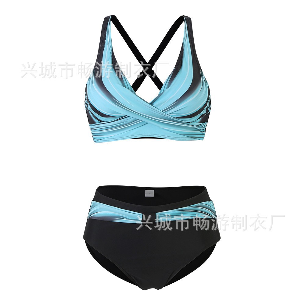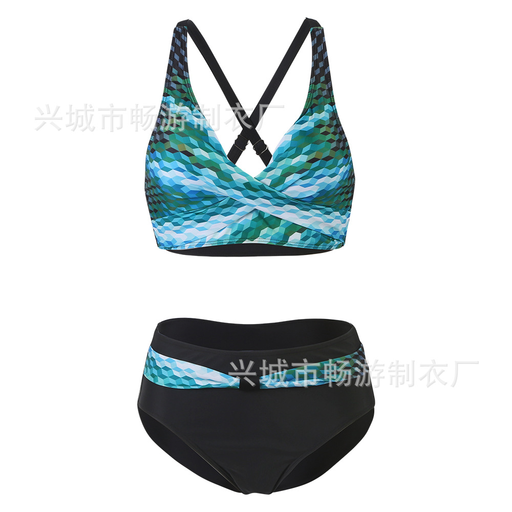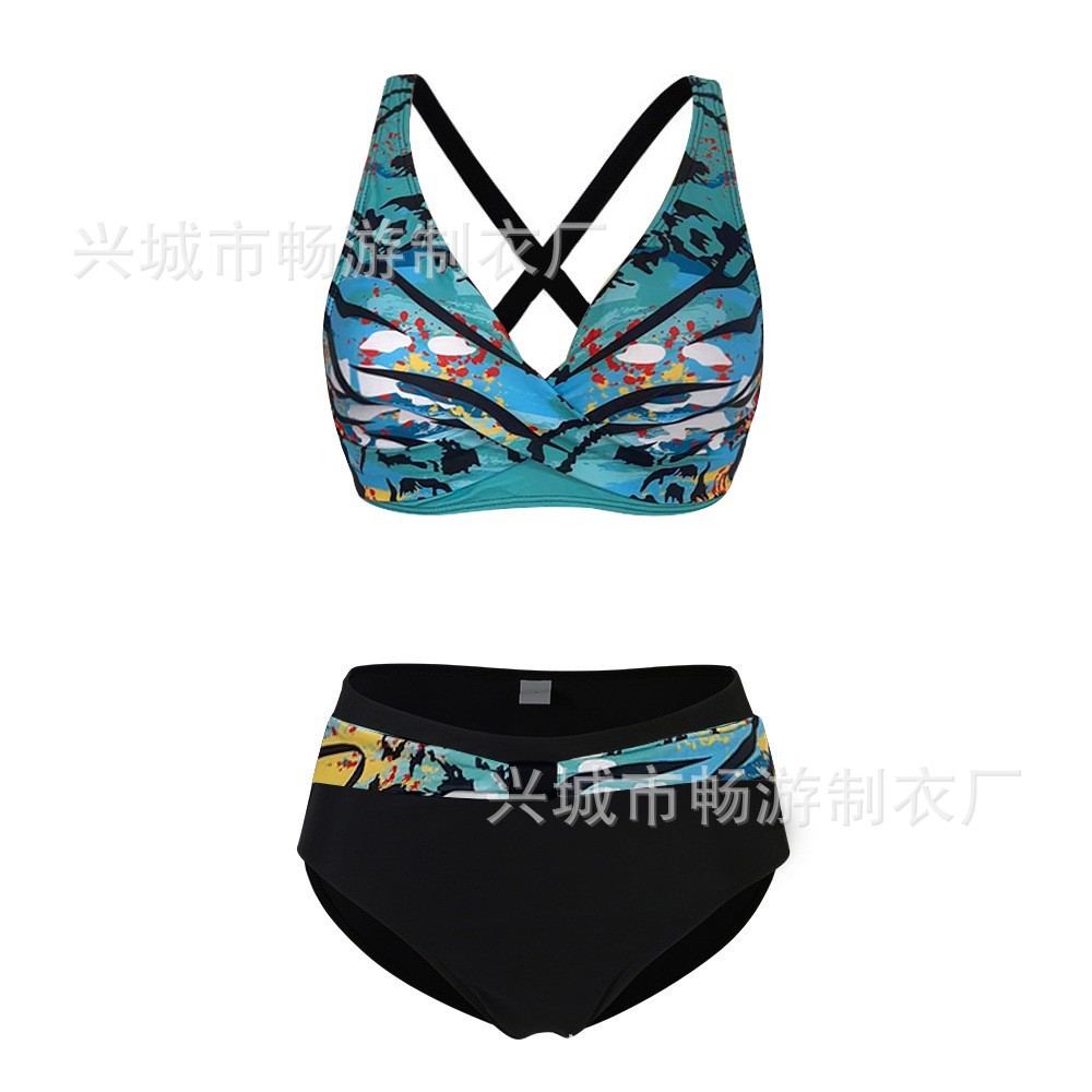 2022 새로운 유럽과 미국의 작은 신선한 분할 수영복 여성 비키니 섹시한 크로스 국경 비키니 수영복