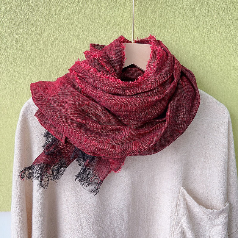 일본 린넨 스카프 대마 그레이 효과 커플 스카프 예술적인 얇은 긴 숄 단색 고급 실크 스카프 여성용 새로운