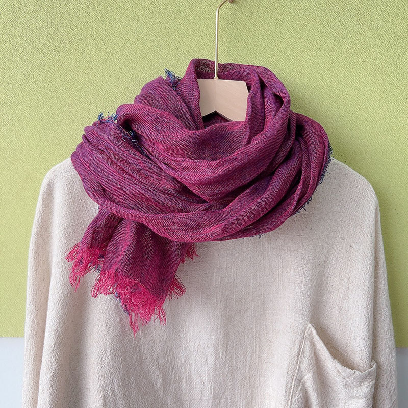 일본 린넨 스카프 대마 그레이 효과 커플 스카프 예술적인 얇은 긴 숄 단색 고급 실크 스카프 여성용 새로운스토어 가기