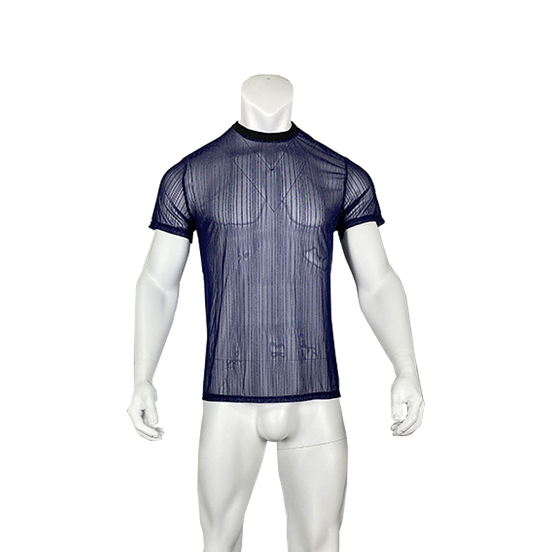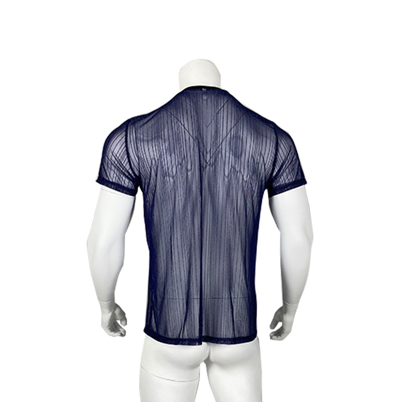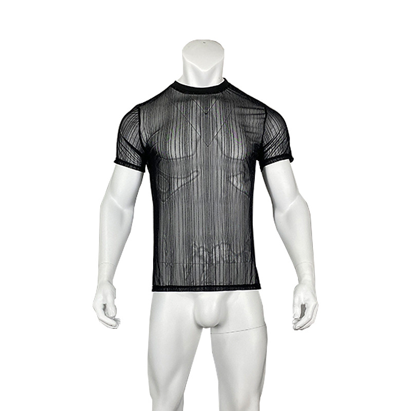 AliExpress 관점 얇은 통기성 패션 나이트 클럽 파티베이스 셔츠 유럽과 미국 남성용 메쉬 섹시한 남성용 티셔츠