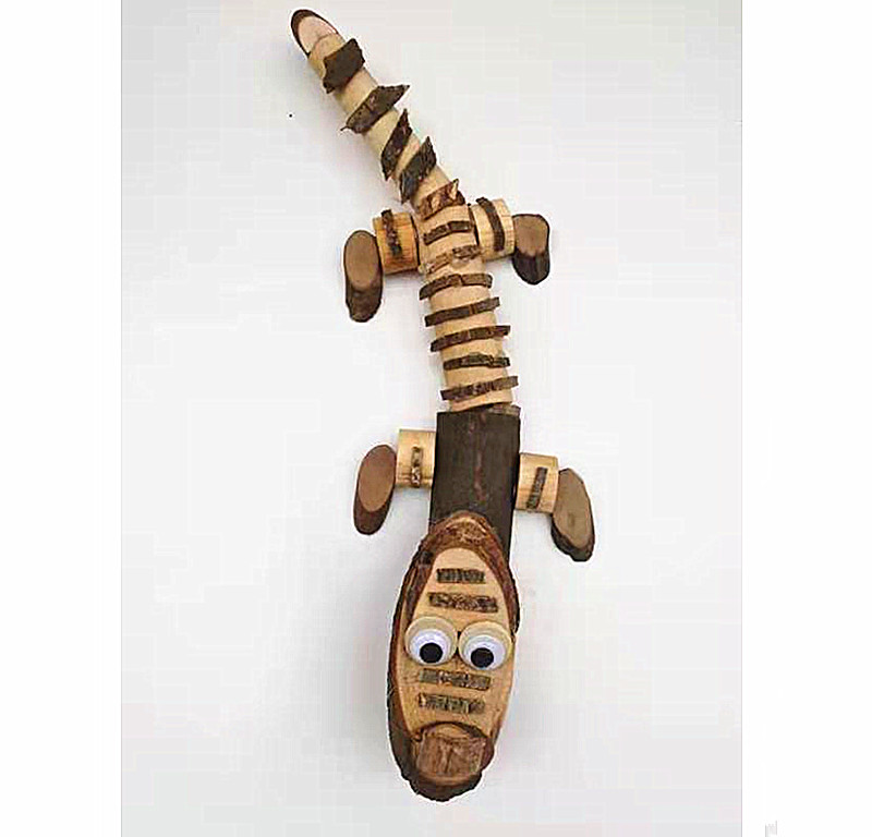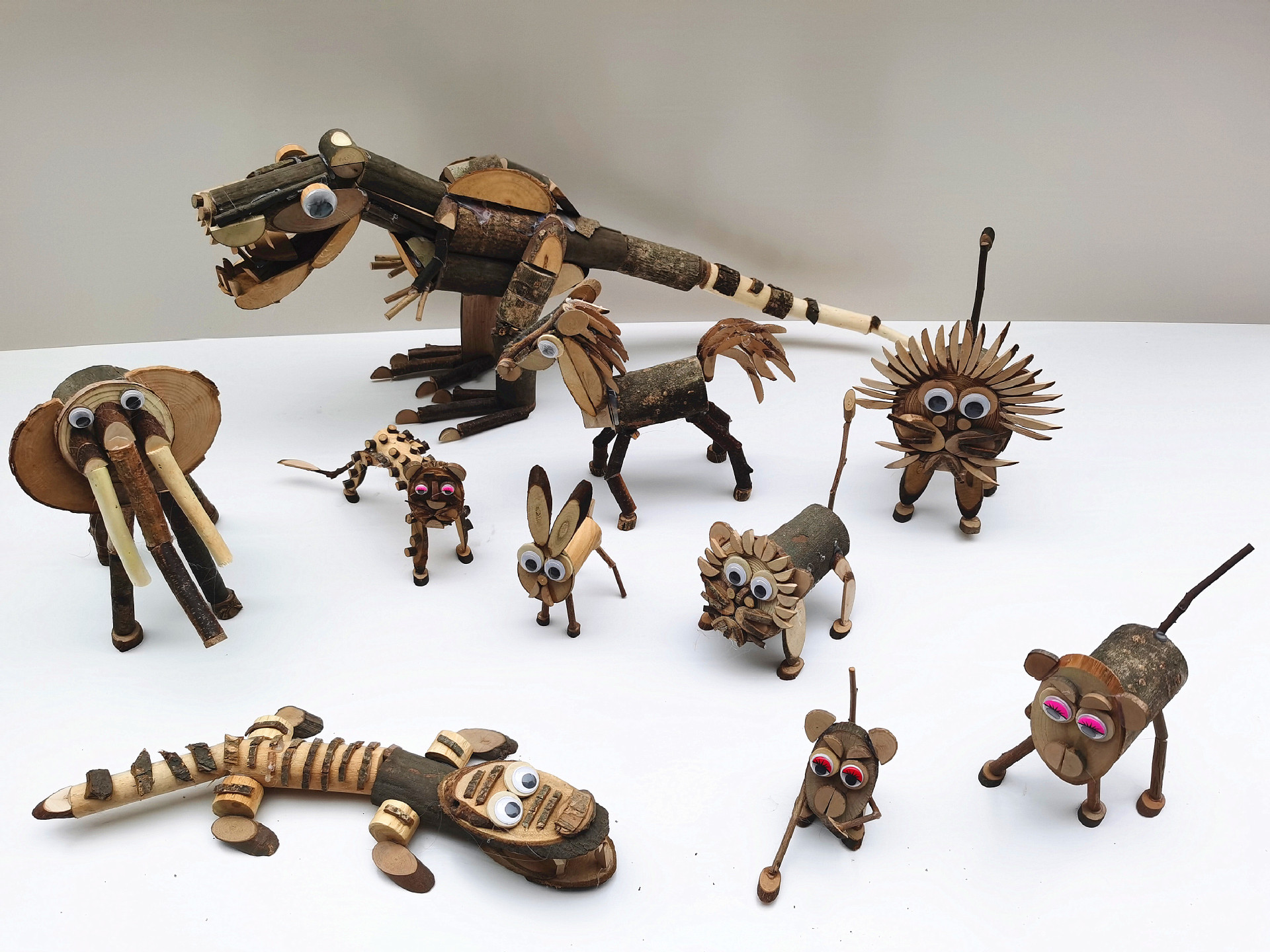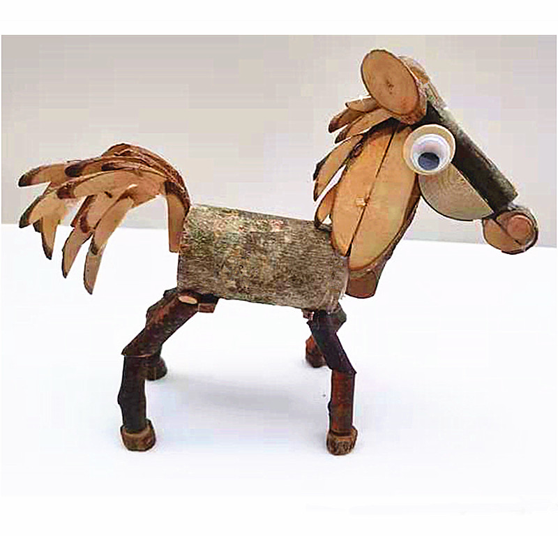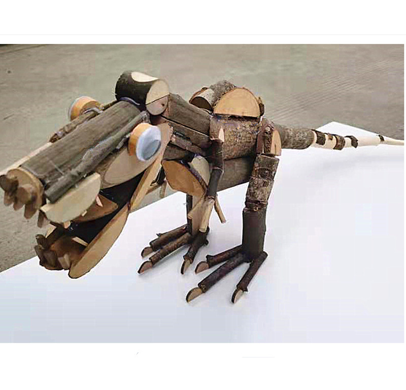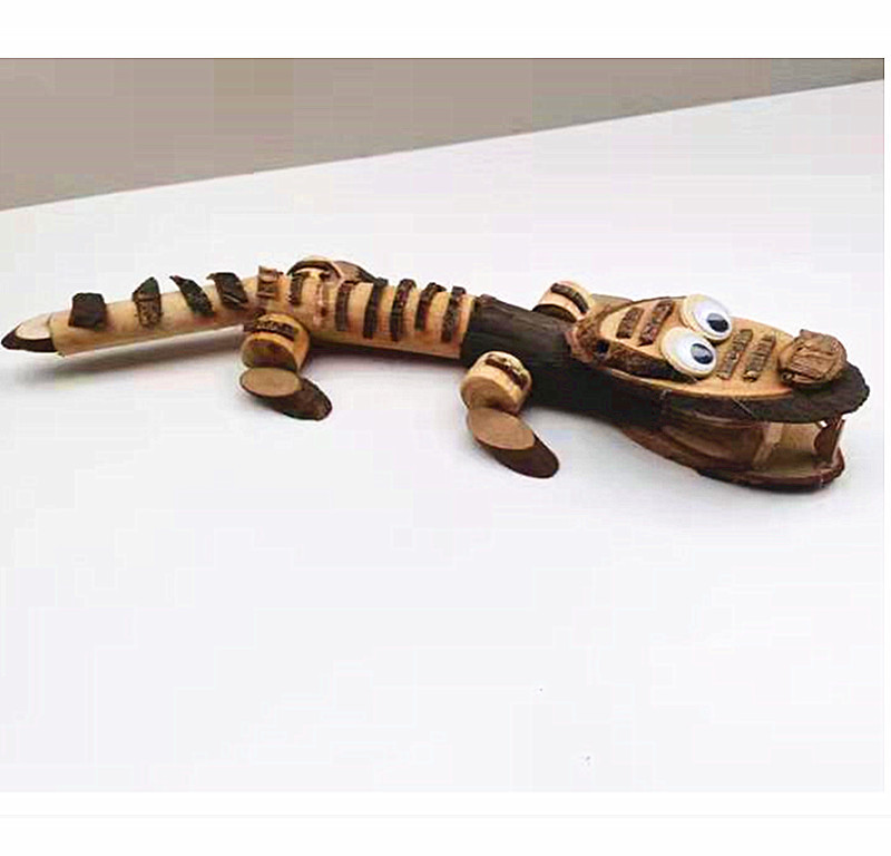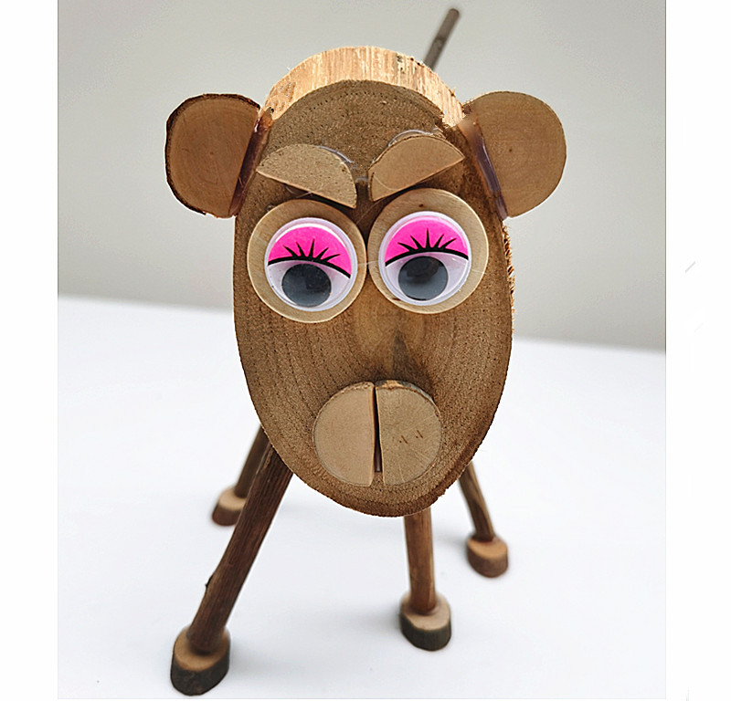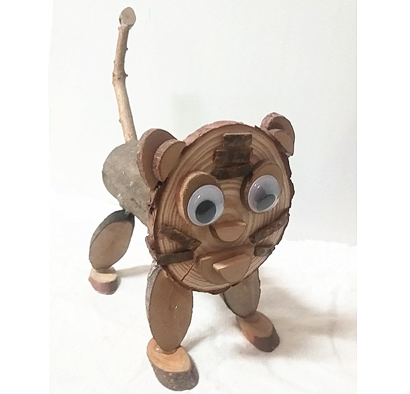 나무 워크샵 창조적 인 DIY 통나무 숲 동물 재료 가방 공룡 악어 말 표범 원숭이 나무 그루터기 가지