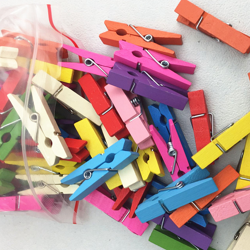 DIY 창조적 인 재료 크기 색상 나무 클립 로그 100 팩 유치원 사진 클립 수제 용품