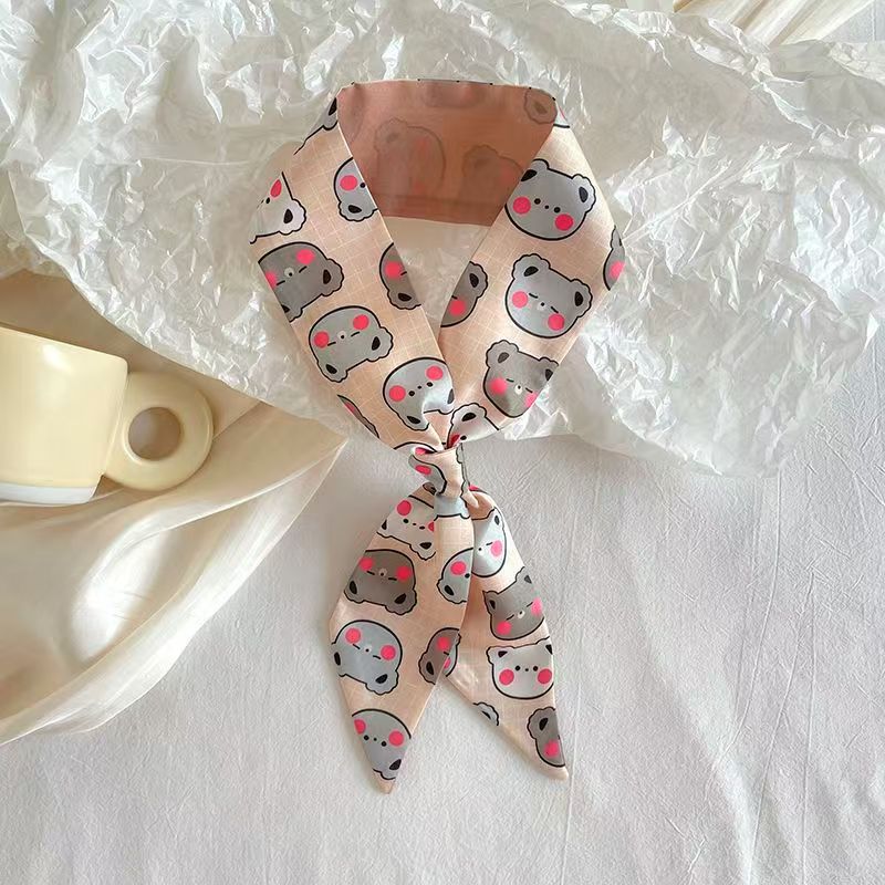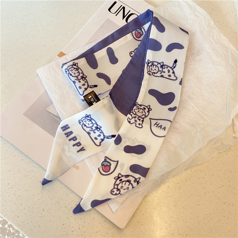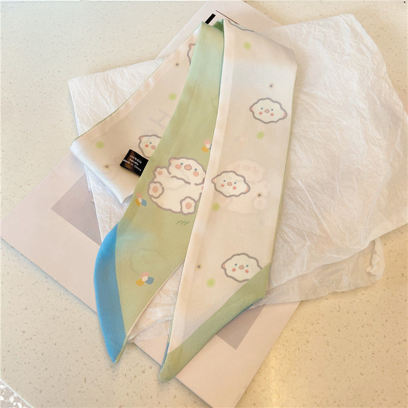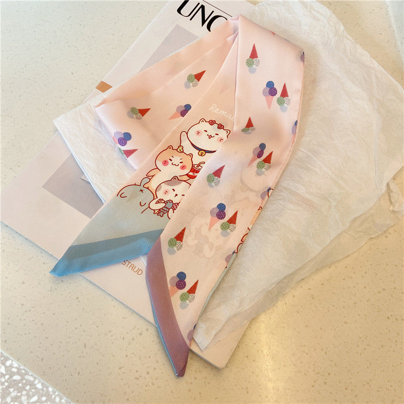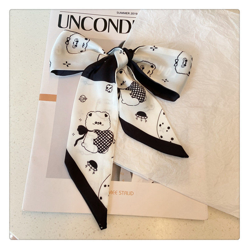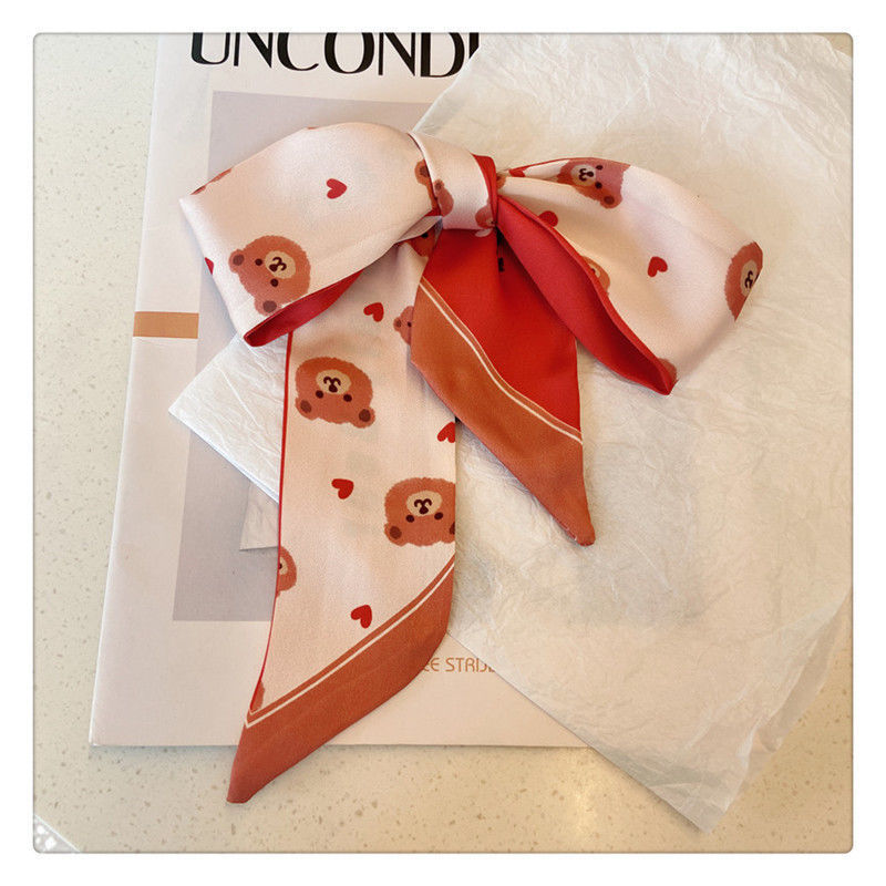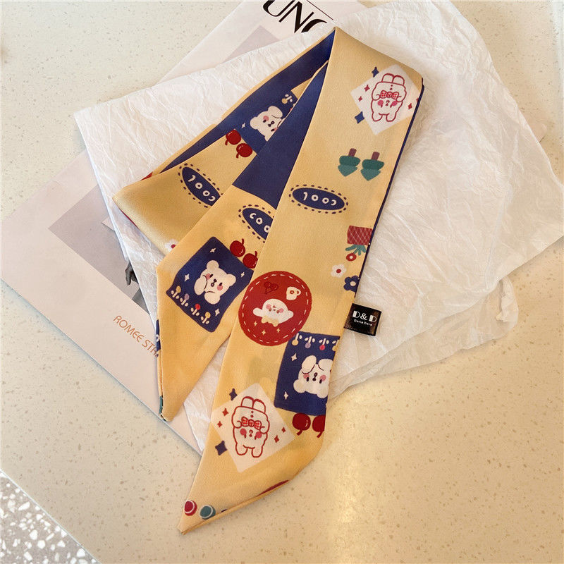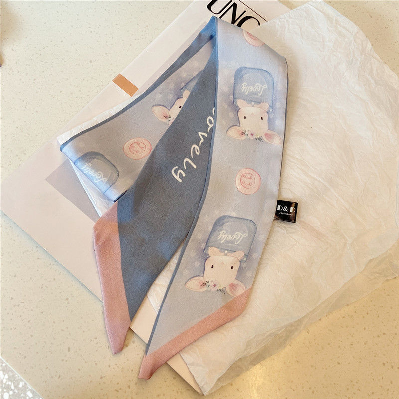 새로운 스타일 작은 스카프 귀여운 만화 귀여운 양면 실크 스카프 헤어 밴드 여성의 긴 얇은 좁은 실크 리본