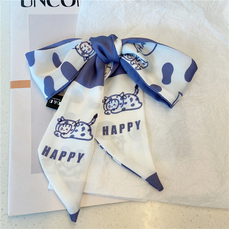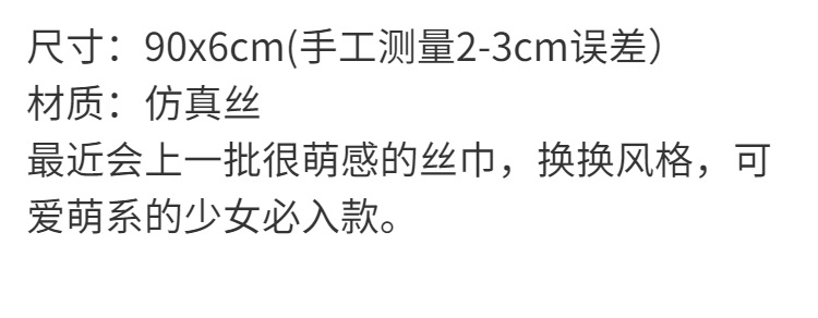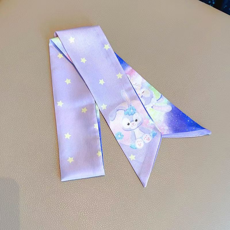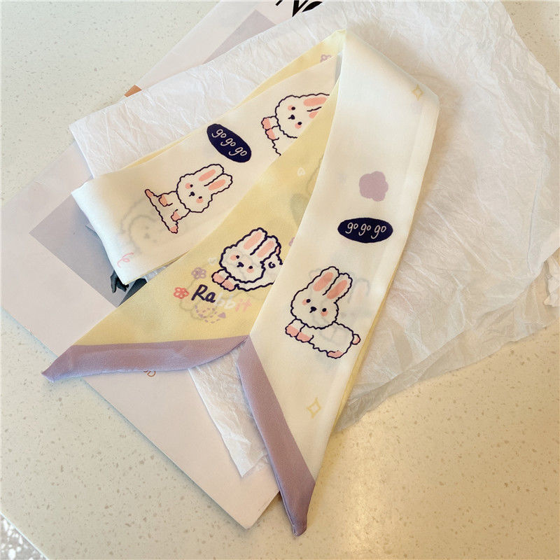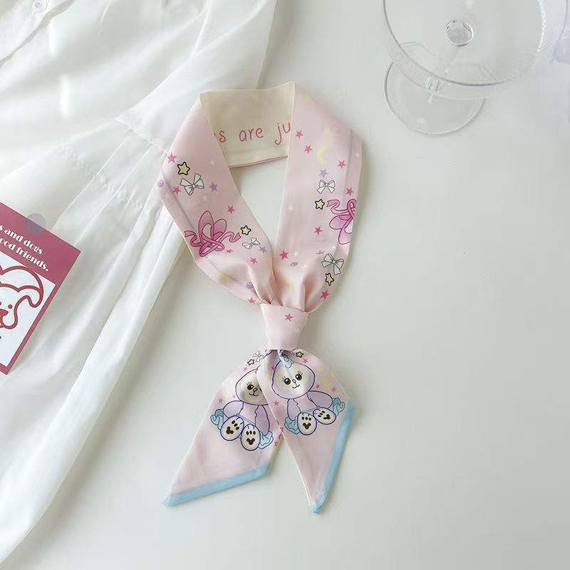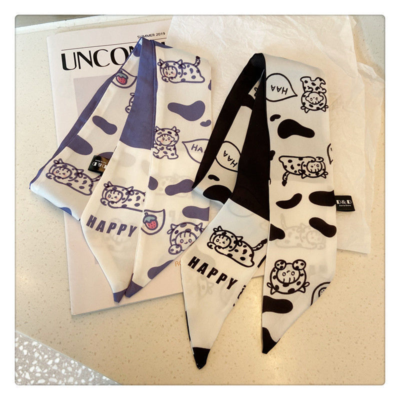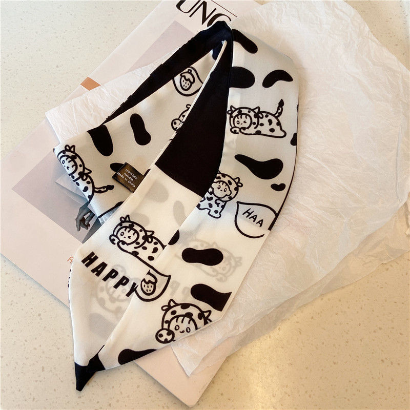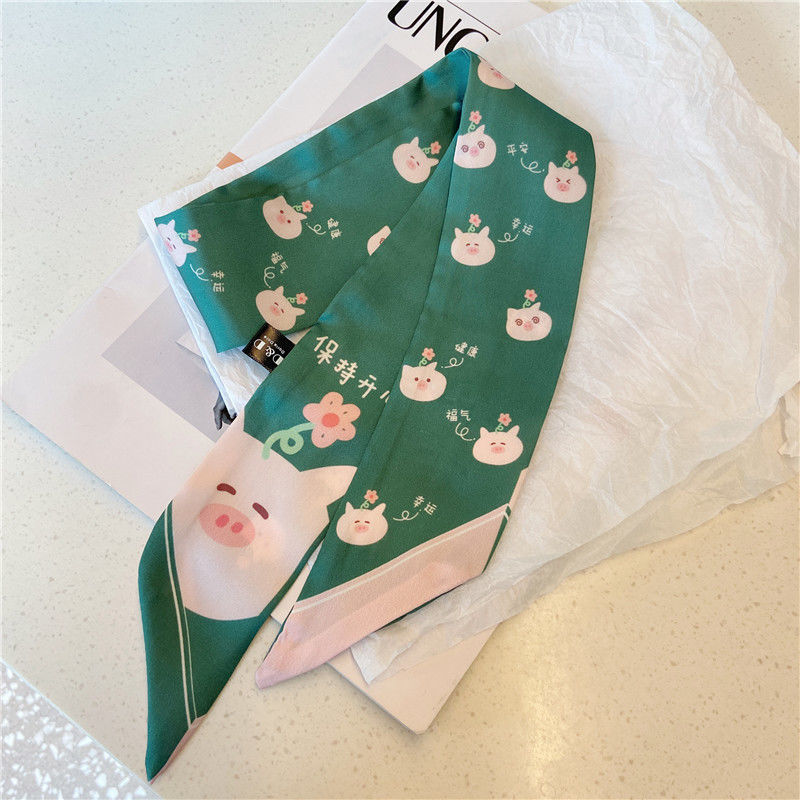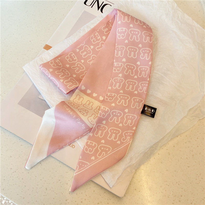 새로운 스타일 작은 스카프 귀여운 만화 귀여운 양면 실크 스카프 헤어 밴드 여성의 긴 얇은 좁은 실크 리본