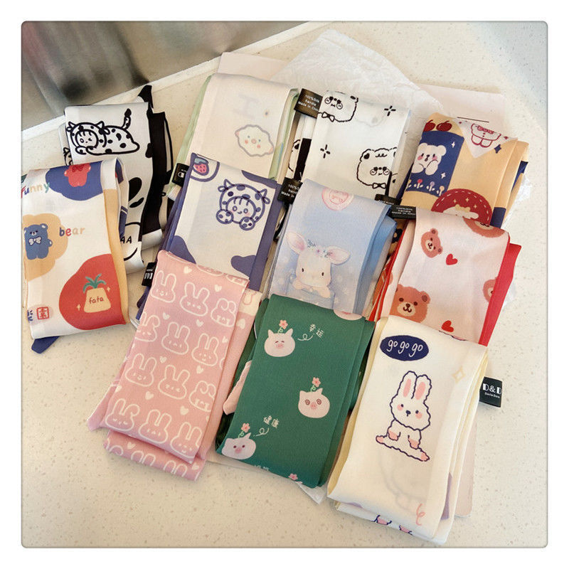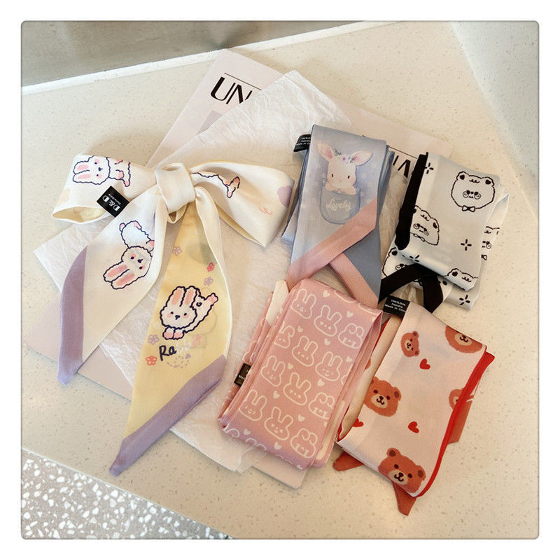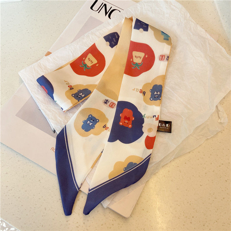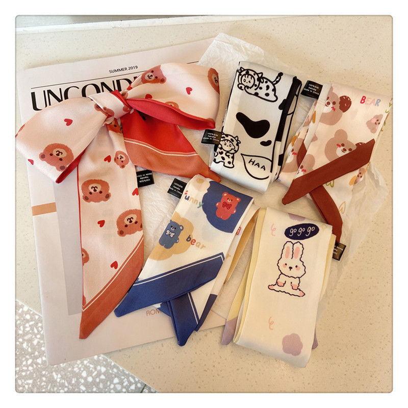 새로운 스타일 작은 스카프 귀여운 만화 귀여운 양면 실크 스카프 헤어 밴드 여성의 긴 얇은 좁은 실크 리본스토어 가기