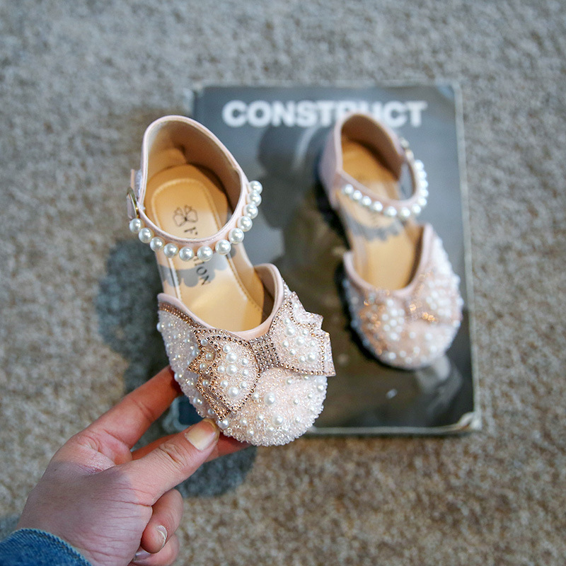 여자 샌들 여름 2022 새로운 봄과 가을 싱글 신발 진주 부드러운 단독 공주 신발 어린 소녀 어린이 크리스탈 신발스토어 가기