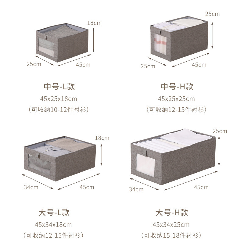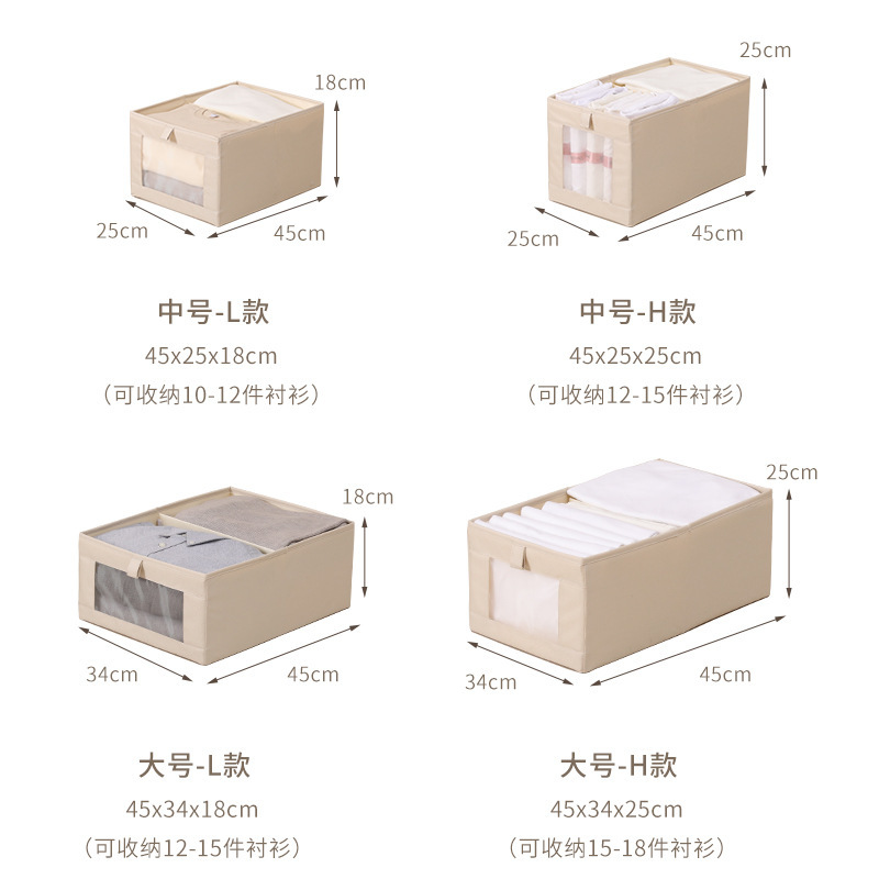 • 중간-H: 45x25x25cm (12-15 셔츠 보관 가능)