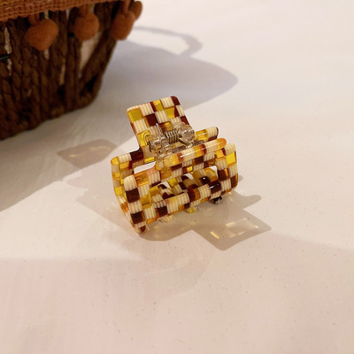 레오파드 무늬 바둑판 아세트산 사각 헤어 클립 여성의 한국 일본식 우아한 하프 헤드 헤어 클립
