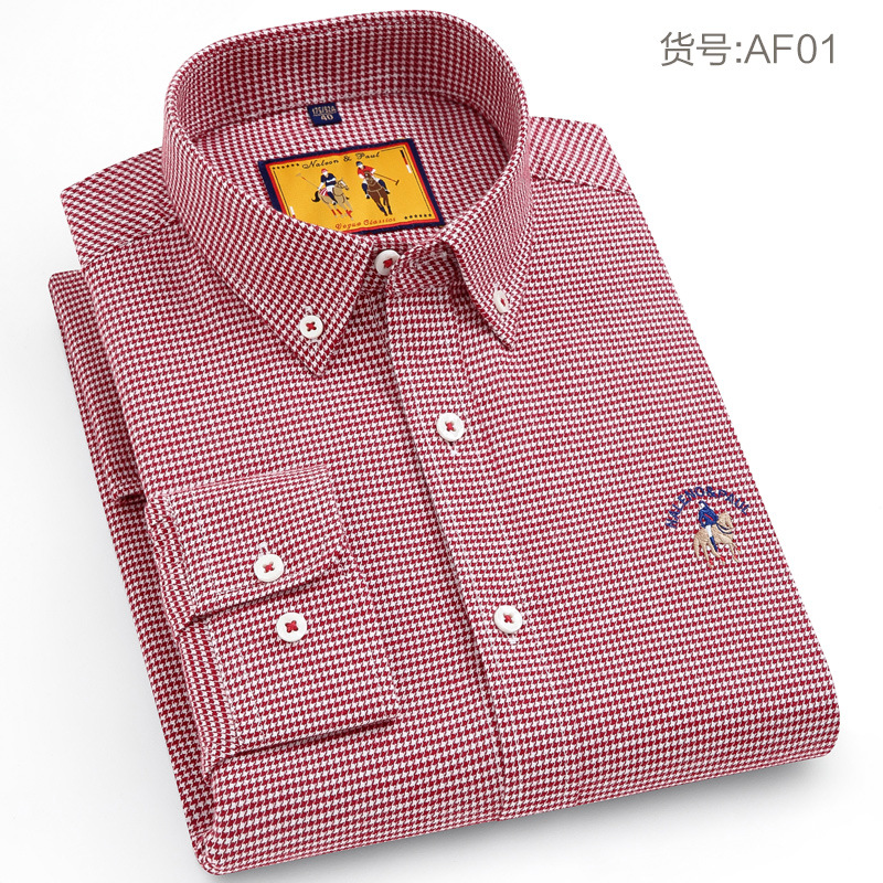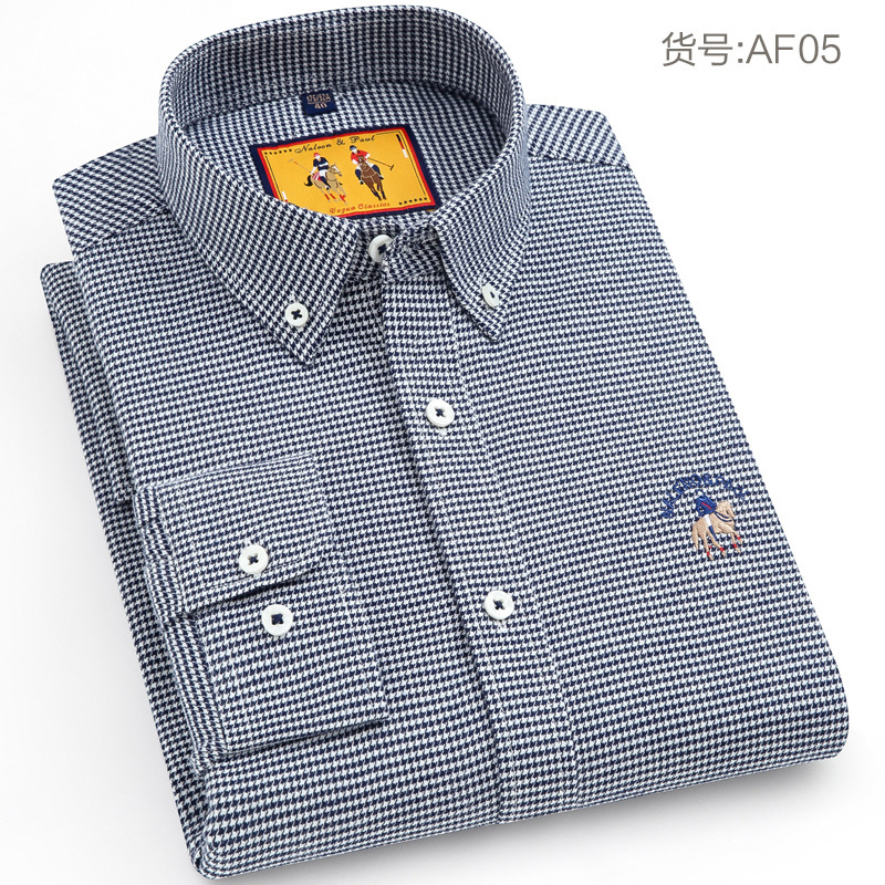 폴 남성용 코튼 체크 무늬 칫솔질 하운드 긴팔 셔츠 전체 플란넬 셔츠 AF01 02 03 05