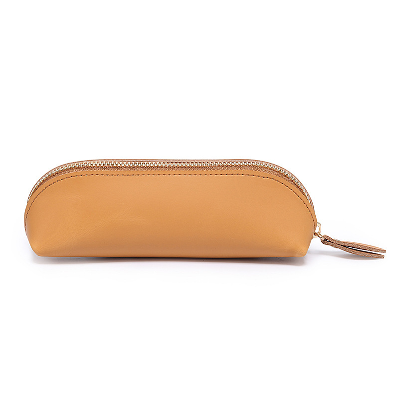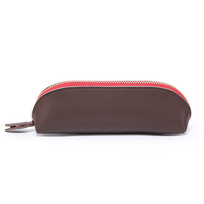 크로스 보더 유럽과 미국 레트로 간단한 필통 소가죽 지퍼 필통 펜슬 펜 보호 케이스 정품 가죽 문구 보관 가방