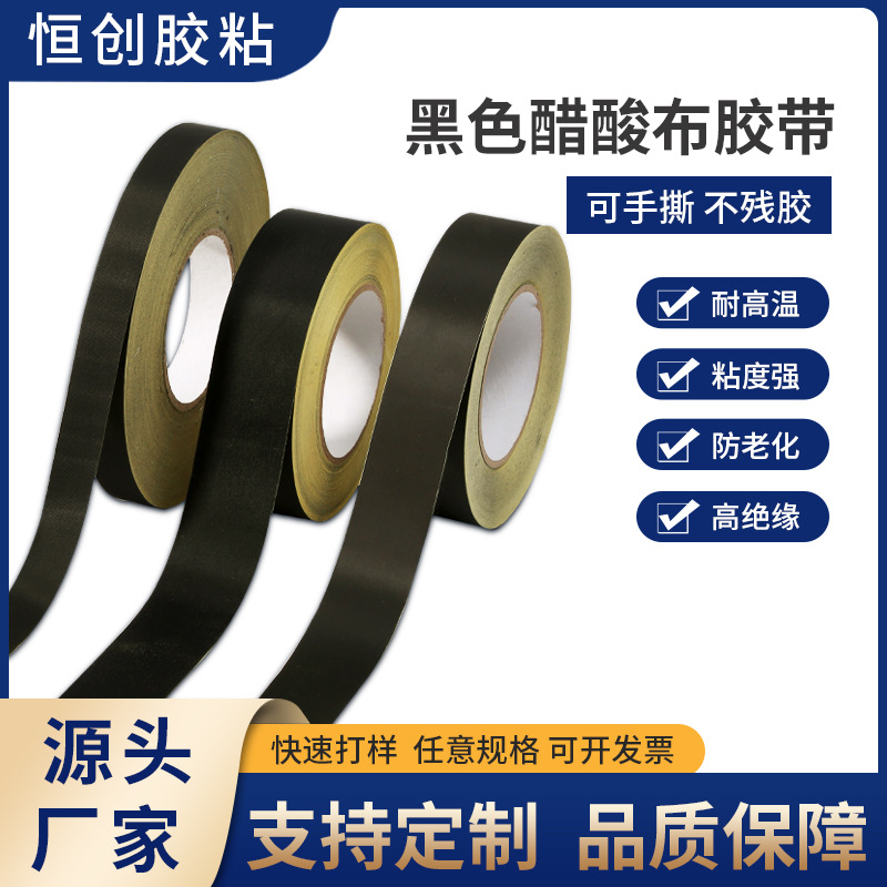 공장 직접 검정 아세테이트 천 테이프 절연 고온 난연 손 찢기 흰색 테이프 폭 설정 가능스토어 가기