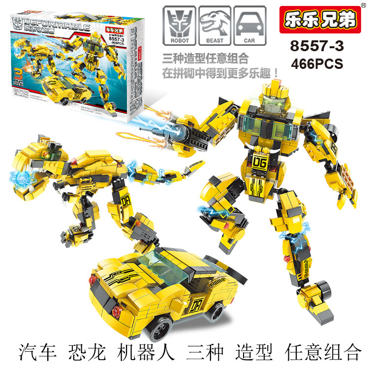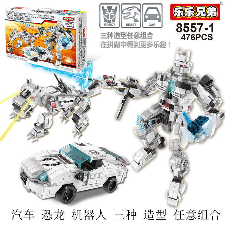 Lele Brothers 8557 로봇 자동차 공룡 빌딩 블록 어린이 소년 교육 조립 완구 국경 간 무료 배송