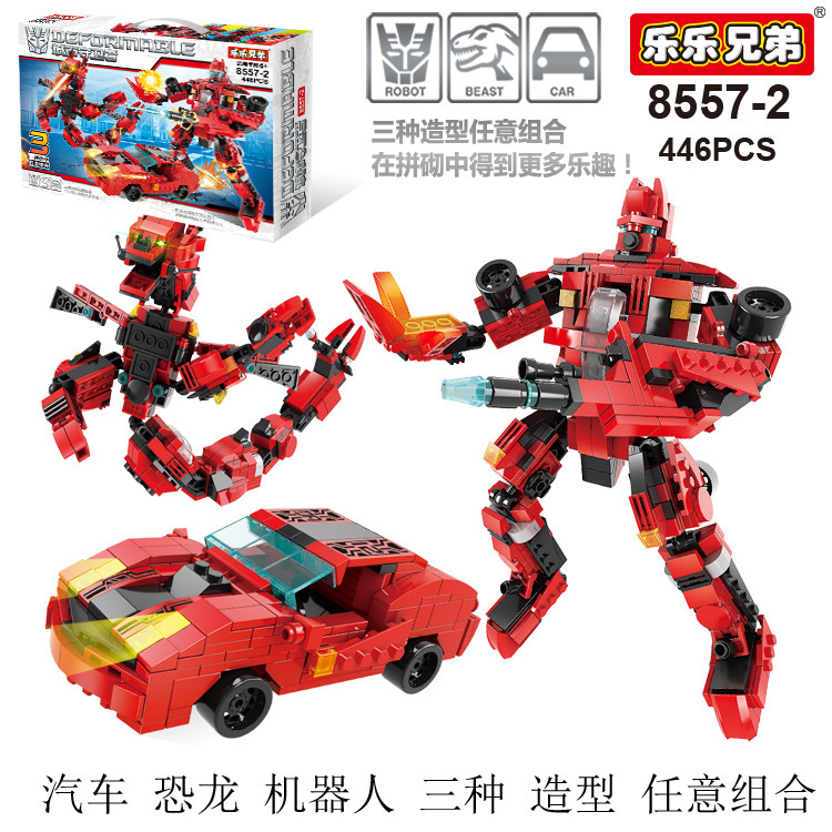Lele Brothers 8557 로봇 자동차 공룡 빌딩 블록 어린이 소년 교육 조립 완구 국경 간 무료 배송스토어 가기