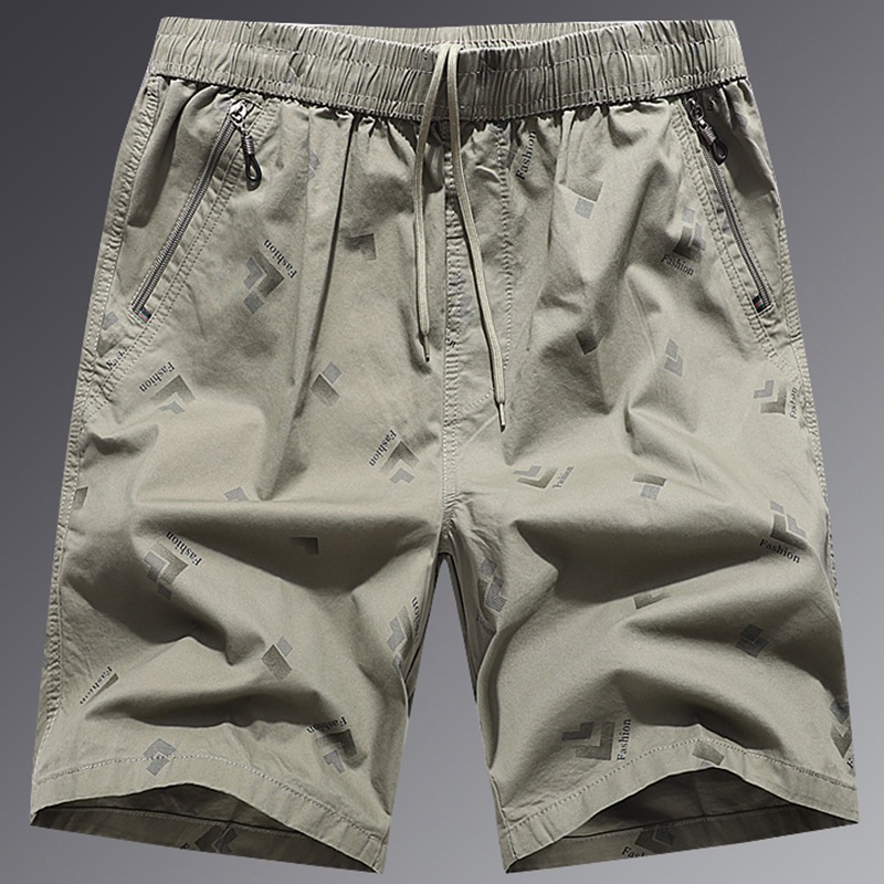 새로운 인쇄 5 점 바지 고급 질감 순면 느슨한 대형 바지 캐주얼 반바지 남성 바지 포켓 지퍼스토어 가기