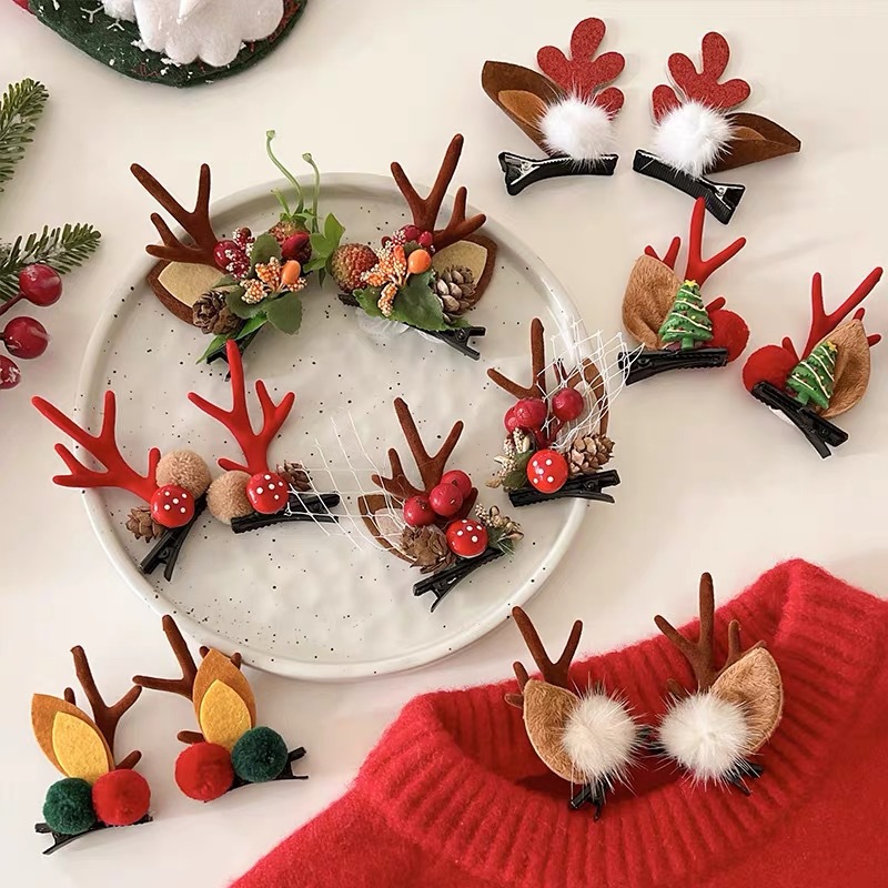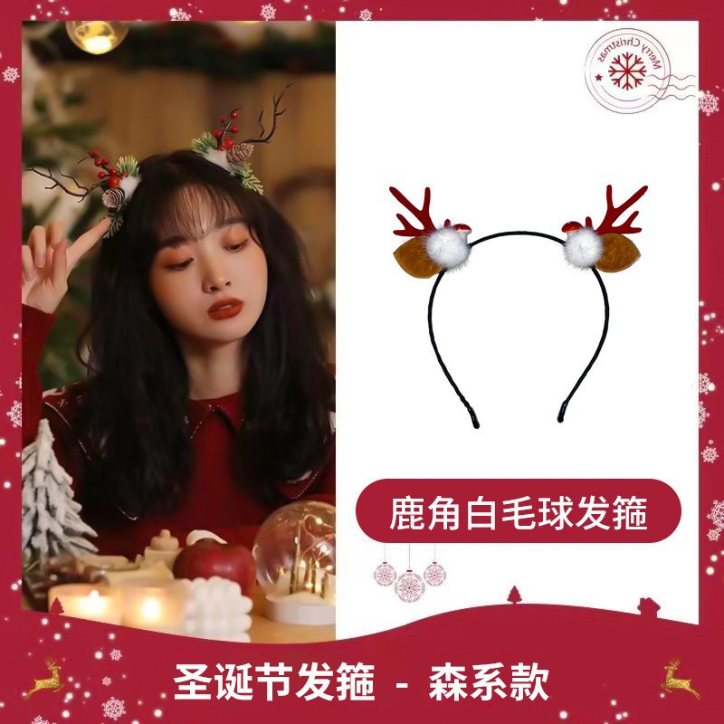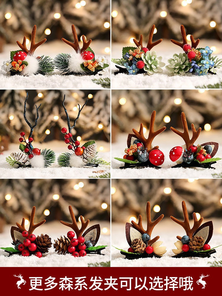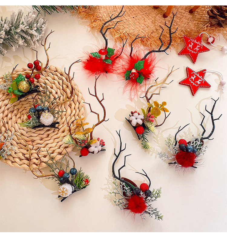 크로스 보더 핫 크리스마스 머리핀 여성 엘크 뿔 머리핀 밍크 벨벳 쌍 귀여운 헤어 액세서리 크리스마스 장식 선물스토어 가기