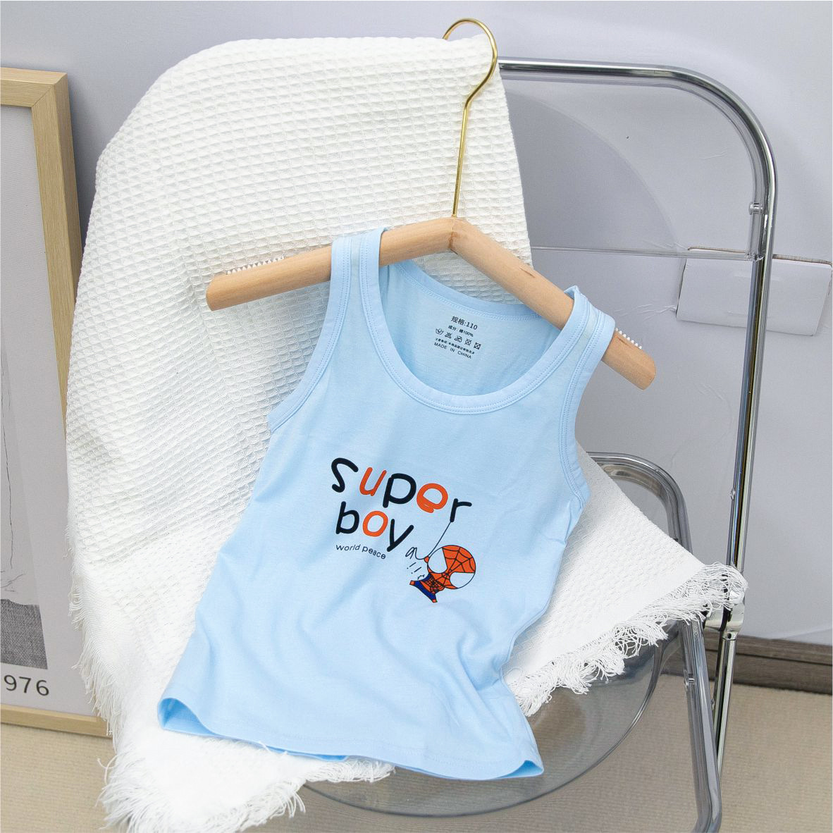 새로운 만화 슈퍼맨 여름 한국 스타일 민소매 남아용 조끼 순면 캐미솔 이너웨어 공장 도매스토어 가기