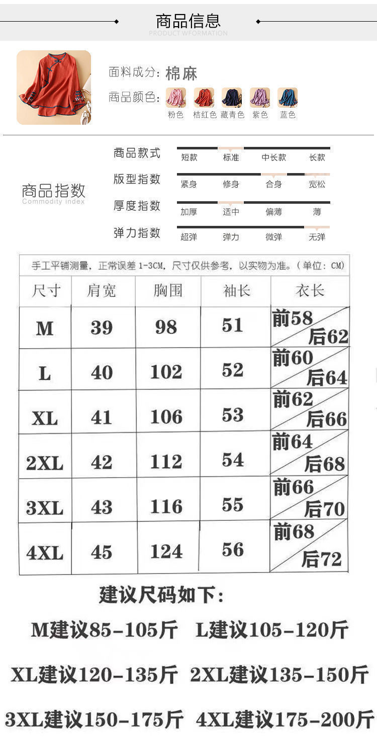 봄 옷 여성의 2022 새로운 중국 스타일 내셔널 패션 여성용 경사 플래켓 버튼 탑 예술적 자수 느슨한 블라우스스토어 가기
