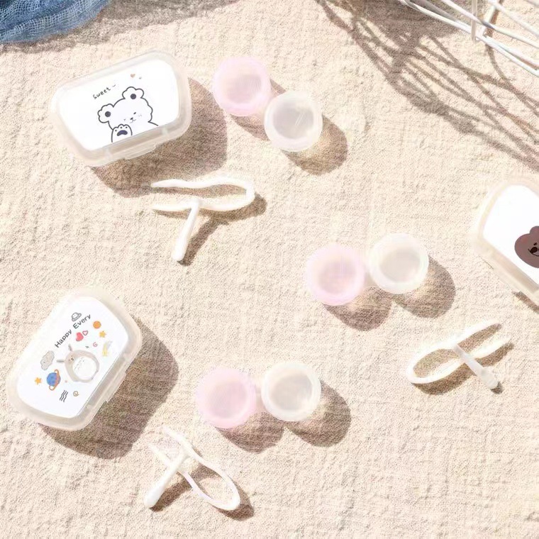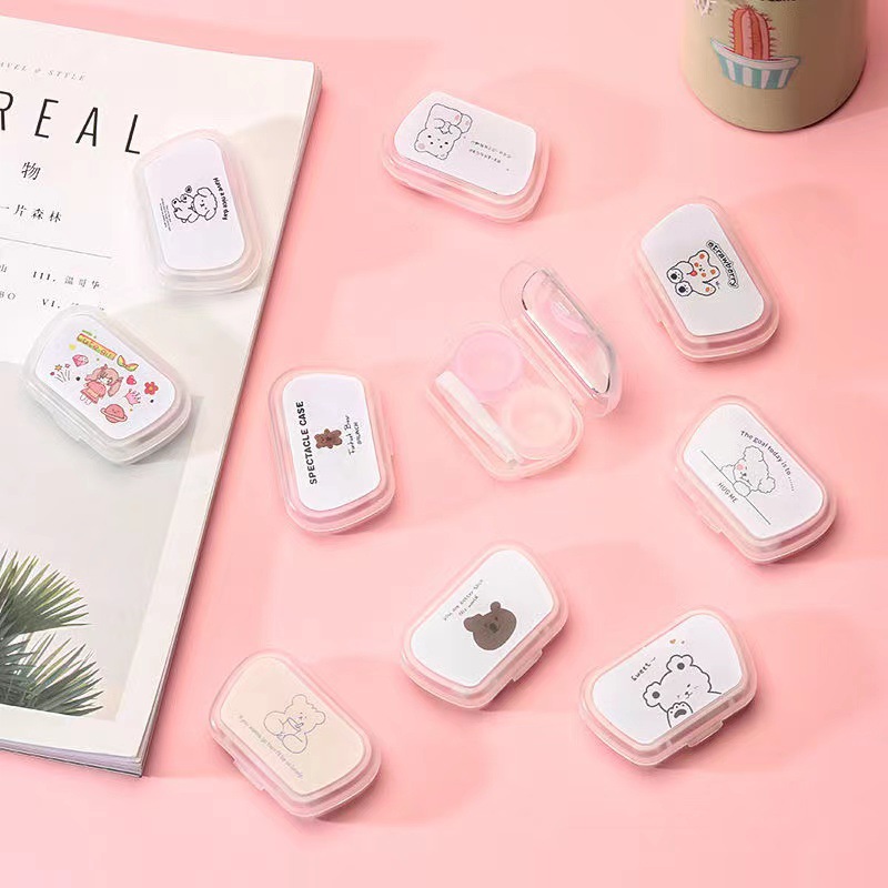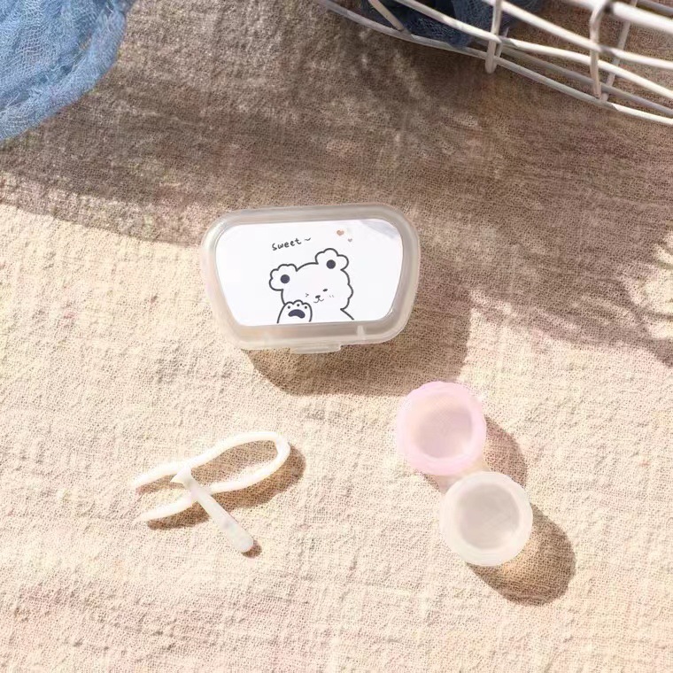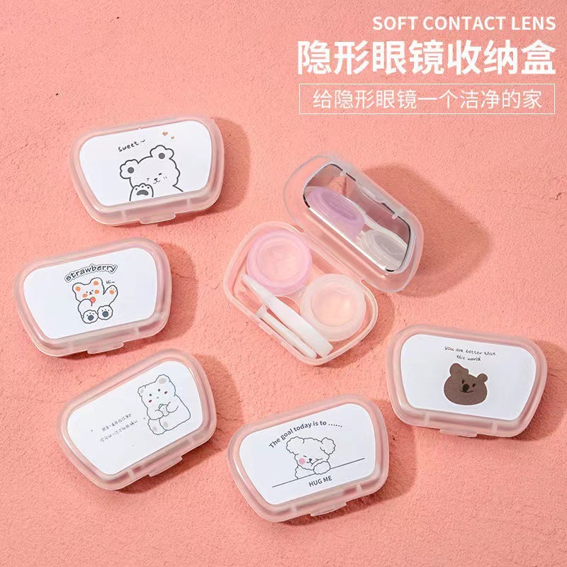 거울 콘택트 렌즈 반주 상자 보관 관리 더블 박스와 간단한 귀여운 휴대용 콘택트 렌즈 케이스 한국스토어 가기