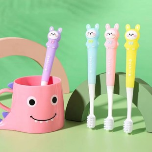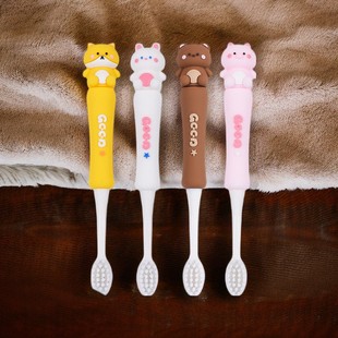 어린이 칫솔 부드러운 세모 치아 보호대 작은 머리 실리콘 짧은 손잡이 칫솔 2-12 세 아기 아기 우유 칫솔 도매