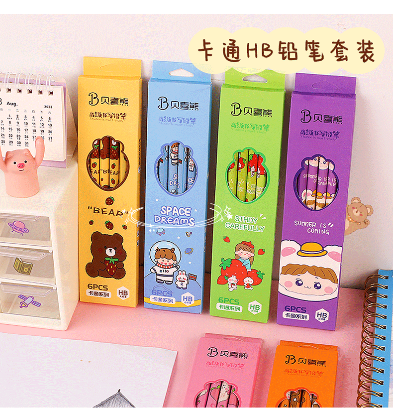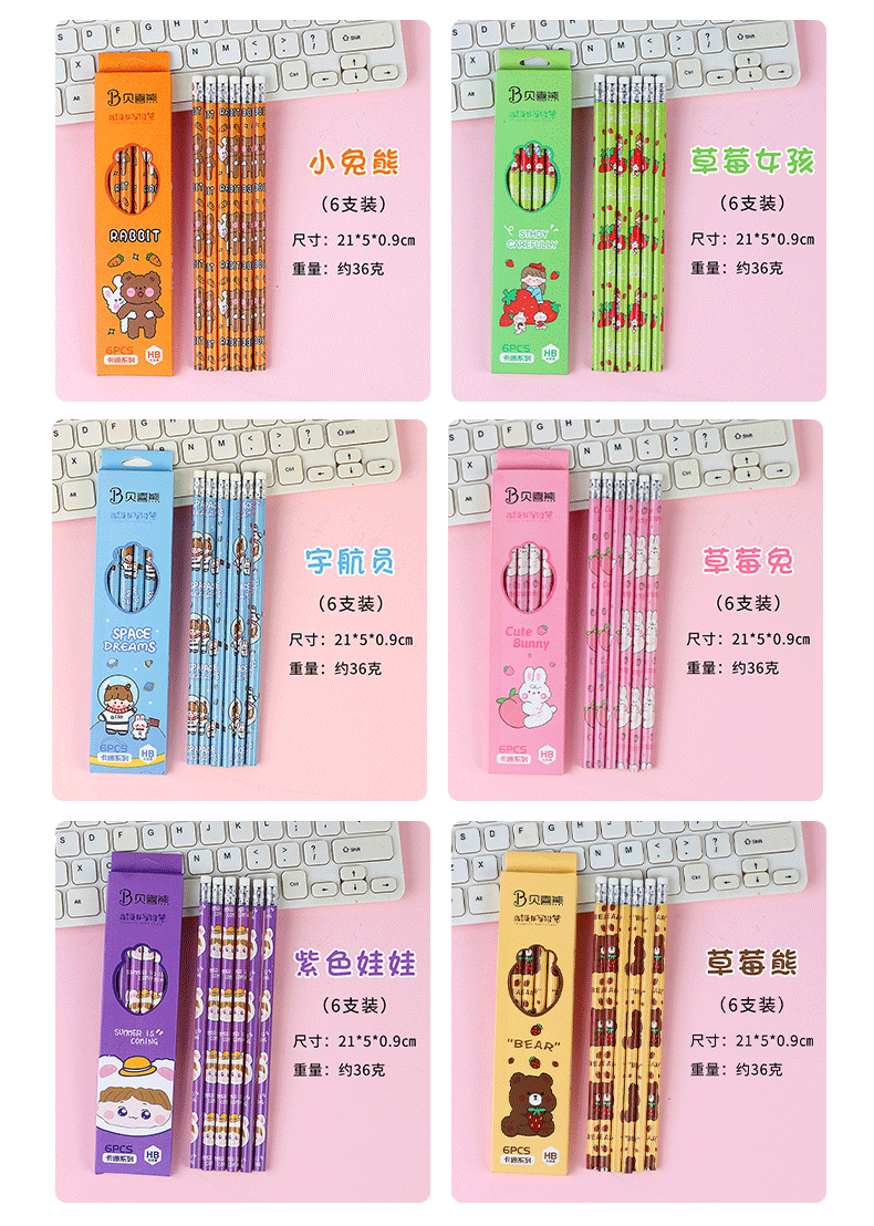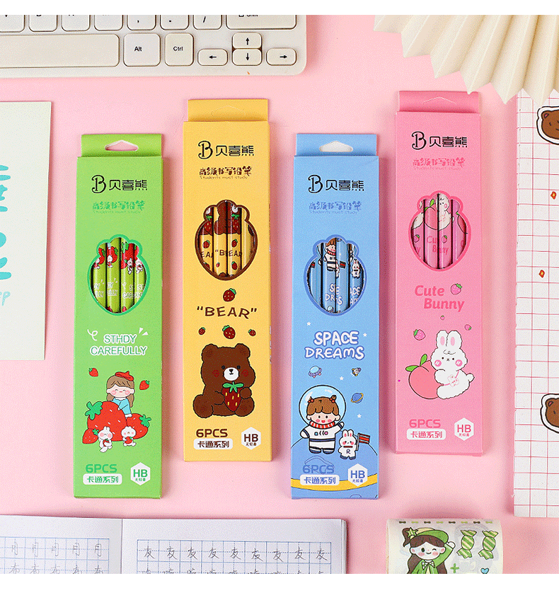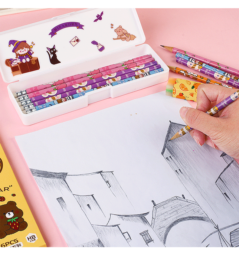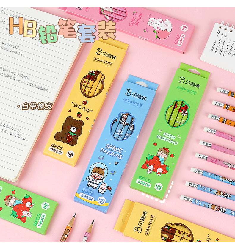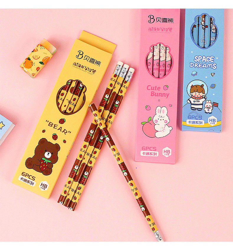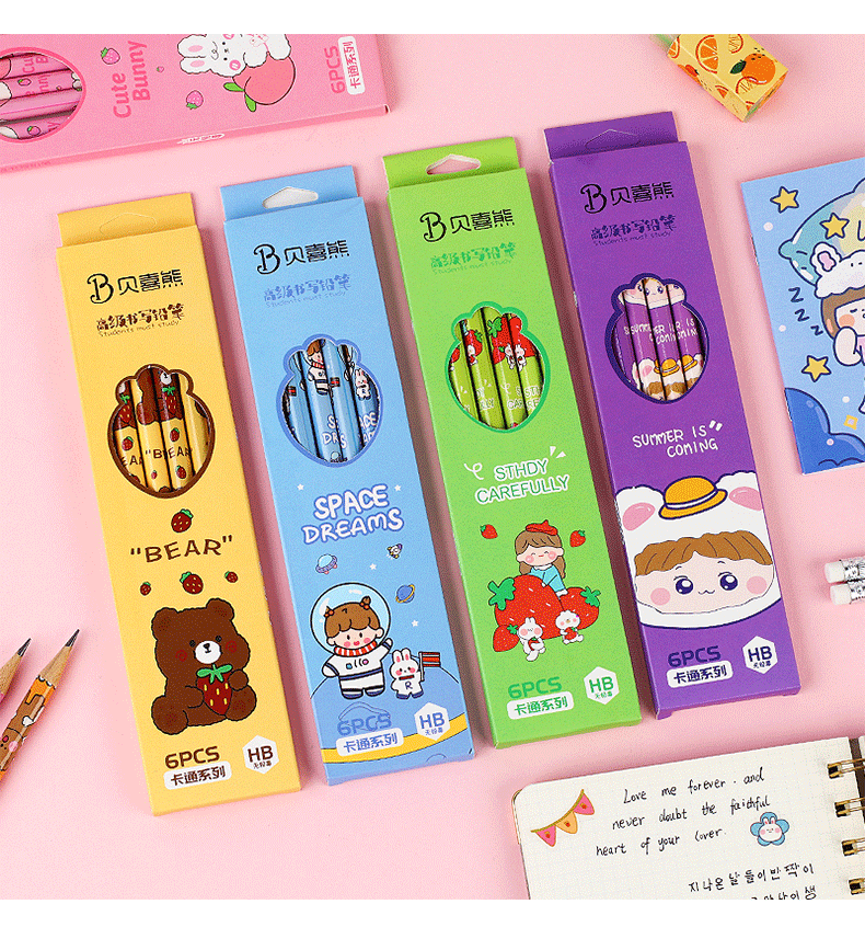 6 상자 HB 연필 지우개 초등학생 학습 용품 필기 펜 문구 상 학교 개교 선물