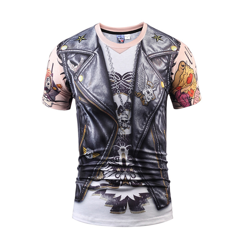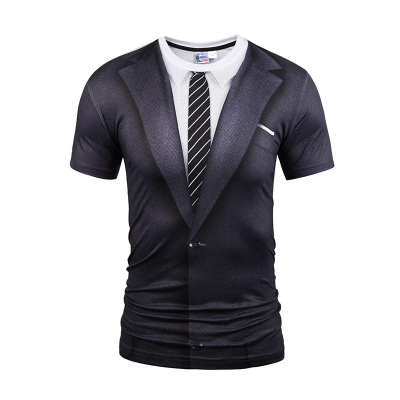 여름 새로운 3d 유럽과 미국 짧은 t 남자의 원피스 짧은 소매 가짜 두 조각 재미있는 디지털 인쇄 창조적 인 선물 티셔츠