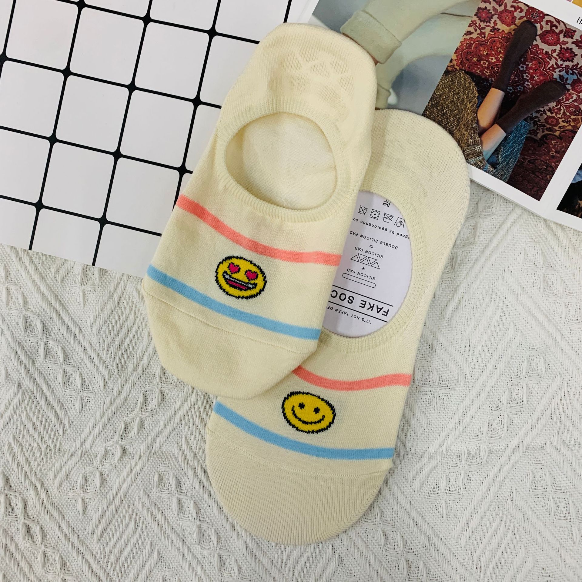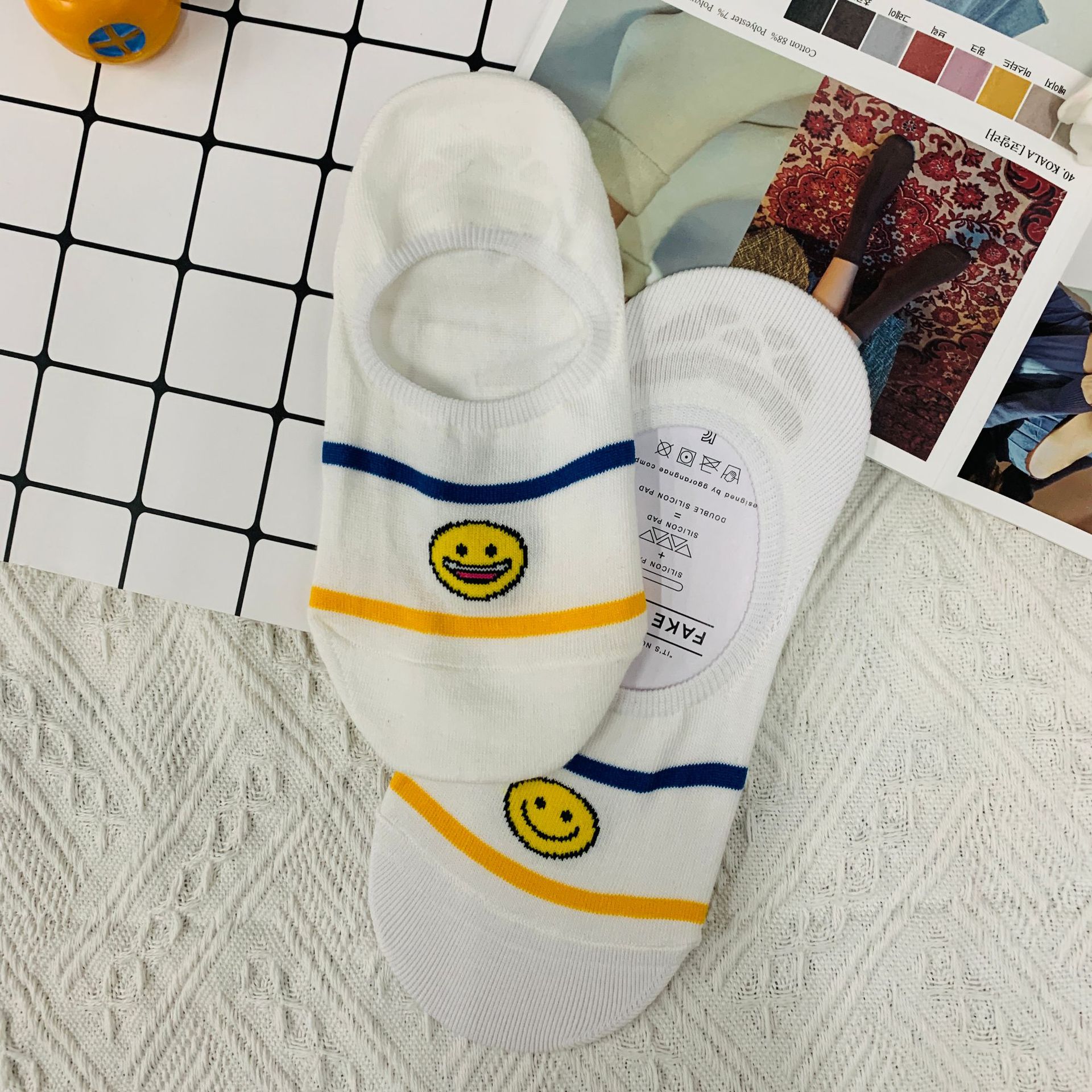 WF115 한국 동대문 맞춤형 재미있는 AB 버전 웃는 보트 양말 봄과 여름 새 여자 양말