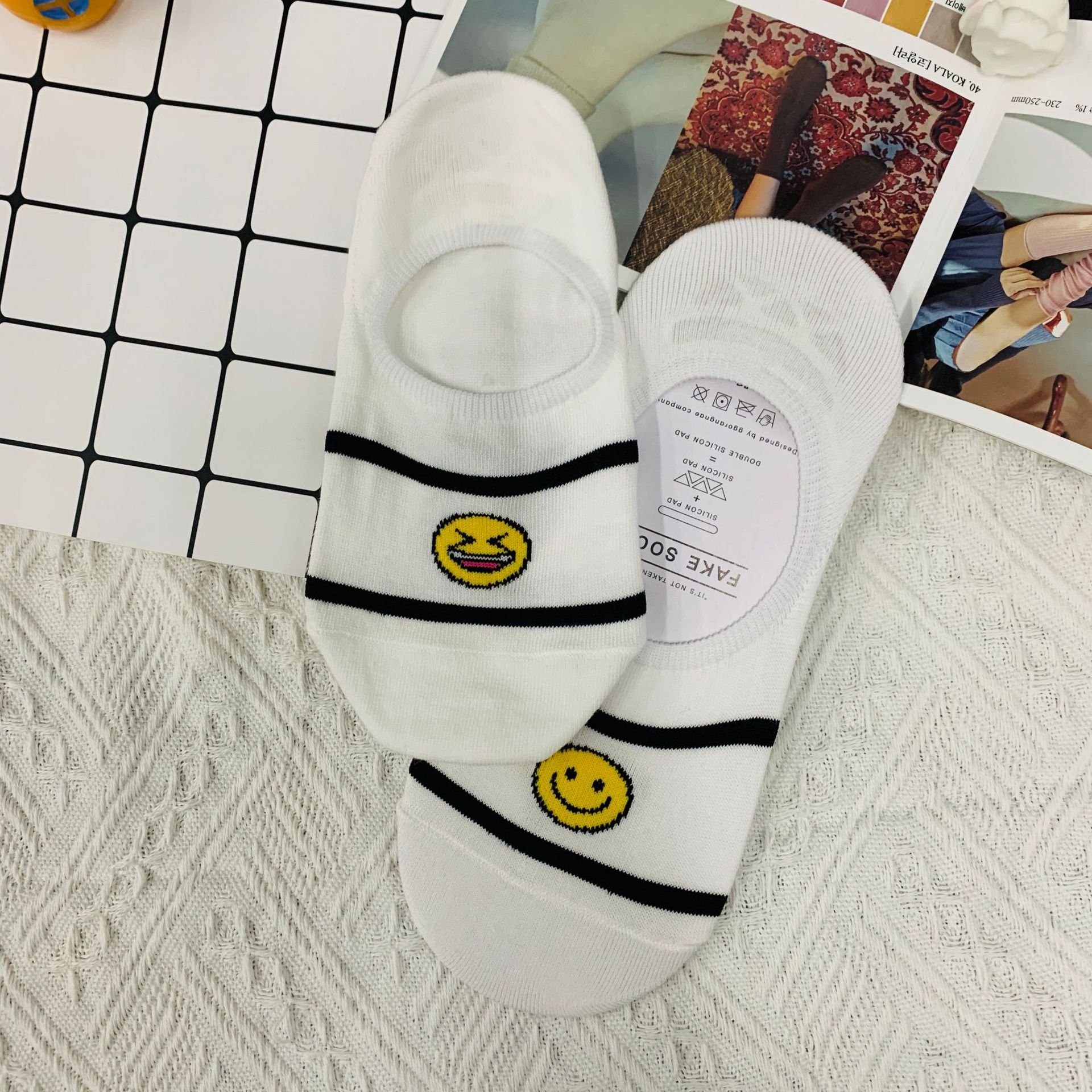 WF115 한국 동대문 맞춤형 재미있는 AB 버전 웃는 보트 양말 봄과 여름 새 여자 양말스토어 가기
