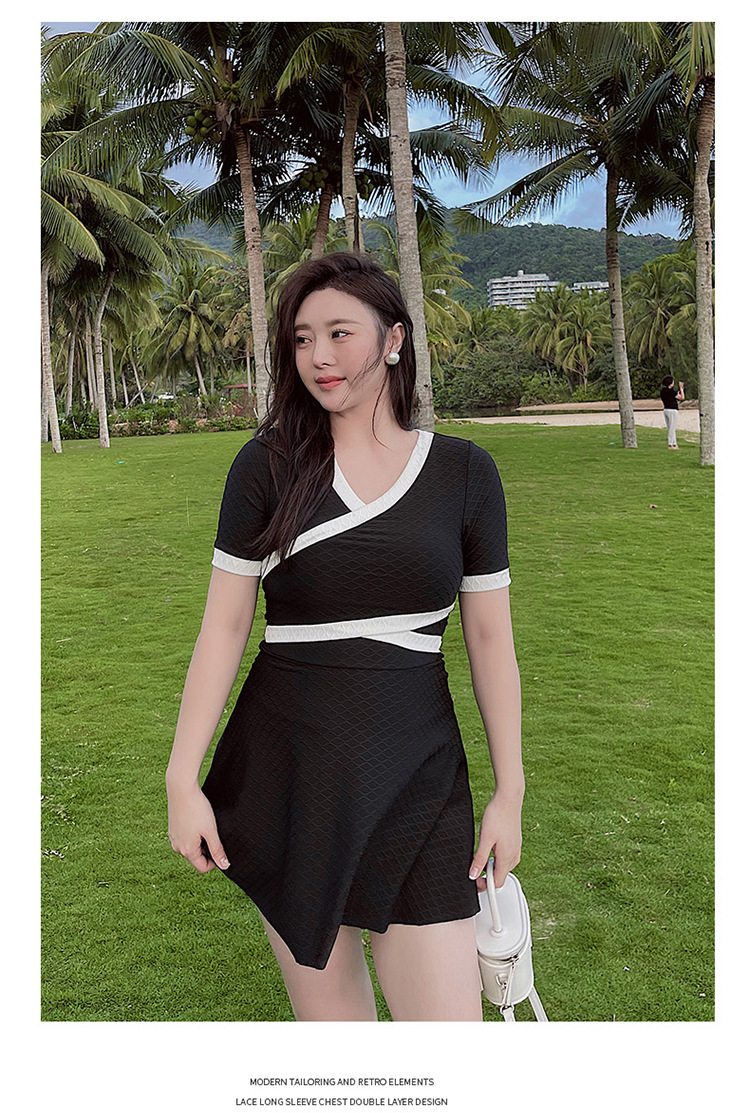 온천 여성용 수영복 2024 새로운 기능 스타일 보수적 인 원피스 배를 덮고 슬리밍 여성의 섹시한 대형 수영복