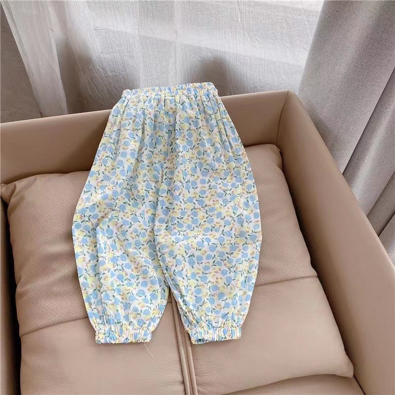 아동용 비치 팬츠, 꽃무늬 바지, 여름용 자외선 차단 바지, 다용도 모기 방지 바지, 여아 여름옷, 프린트 중간/하이웨이스트, 전원풍