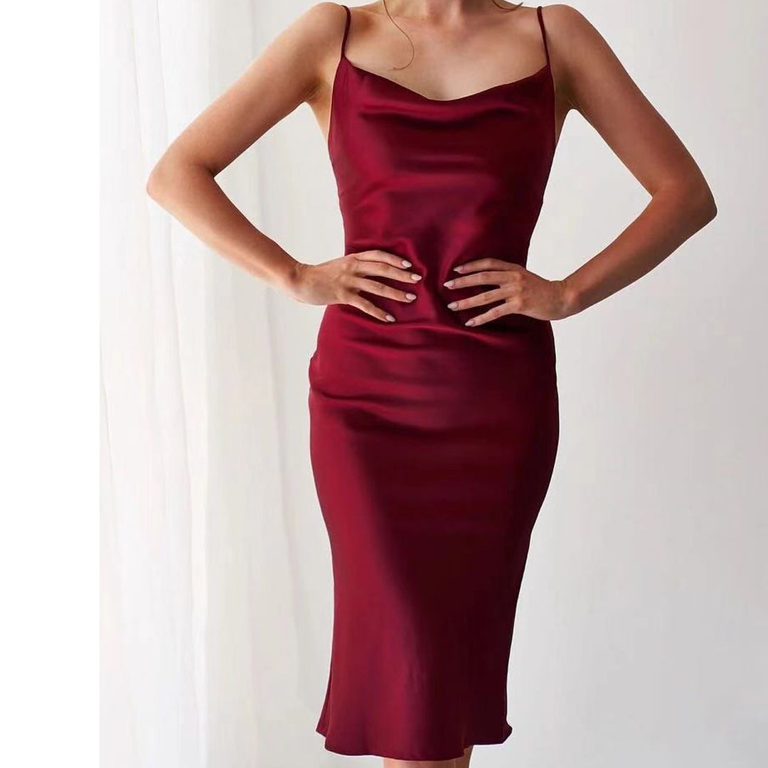 브로큰 사이즈 클리어런스 여성용 슬림핏 원피스 유럽과 미국 슬림핏 섹시 백리스 스커트스토어 가기