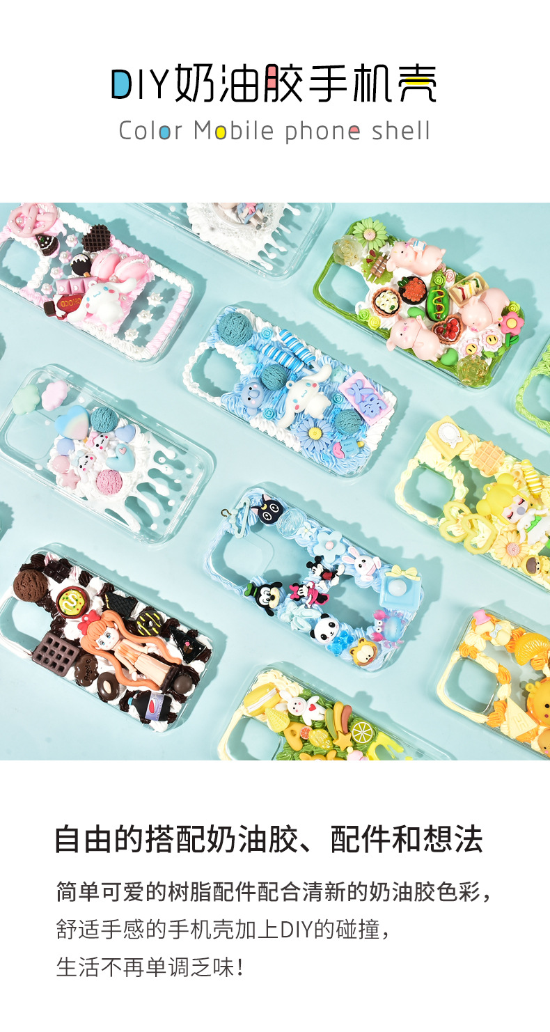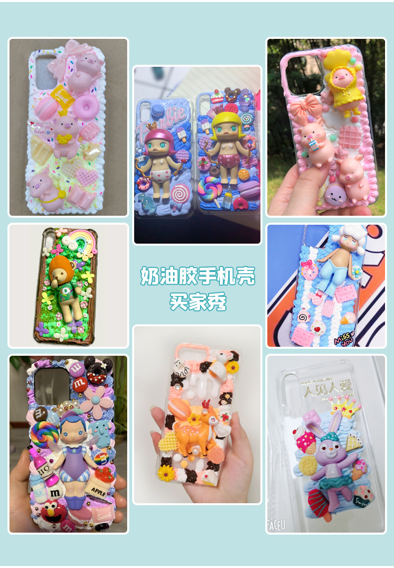 DIY 휴대 전화 케이스 크림 접착제 소재 가방 수제 자체 제작 인형 수지 작은 액세서리 보석 행운의 가방 세트스토어 가기