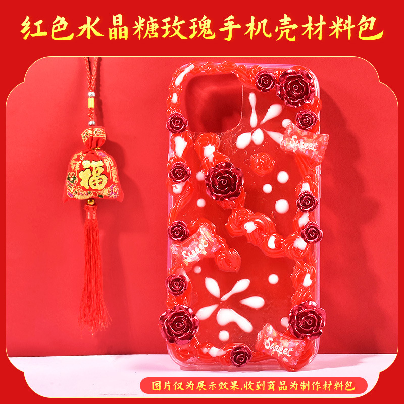 • 붉은 크리스탈 설탕 장미 전화 케이스 소재 가방