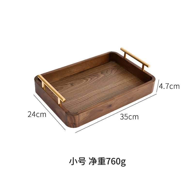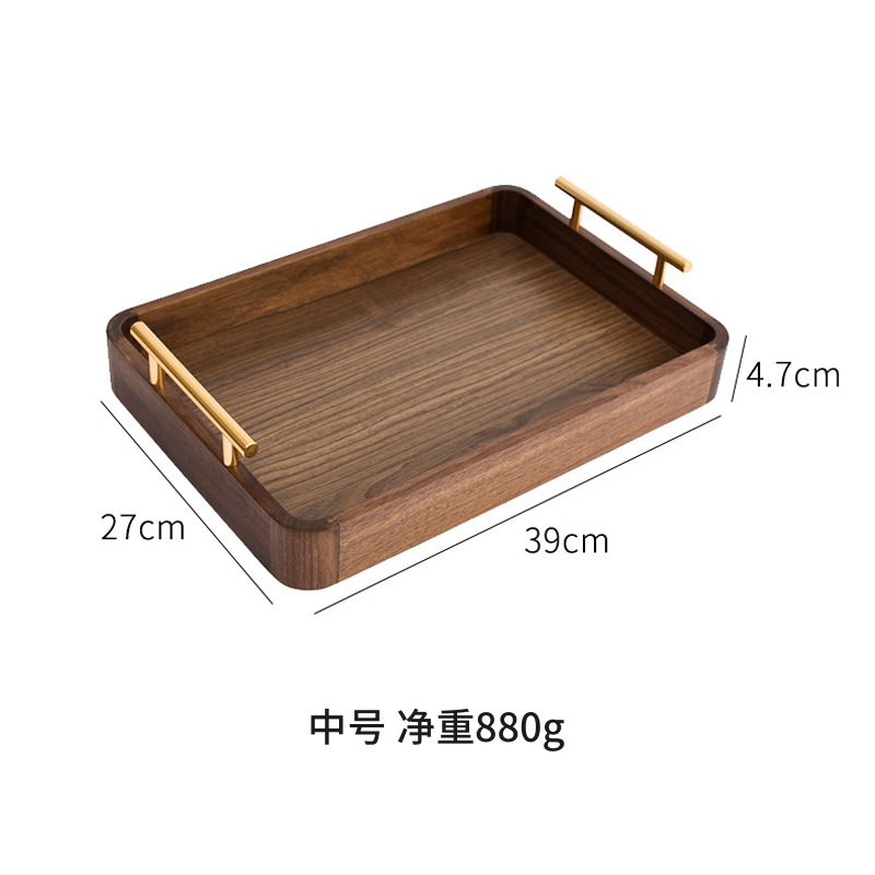 검은 호두나무 직사각형 나무 트레이 금속 손잡이 가정용 원목 아침식사 트레이 과일 트레이 검은 호두나무스토어 가기