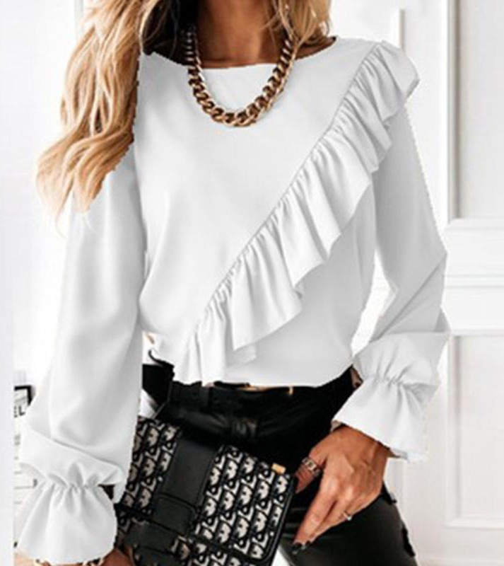 국경 간 유럽과 미국 여성 의류 아마존 봄과 가을 여성 셔츠 우아한 통근 단색 긴 소매 쉬폰 셔츠 여성용스토어 가기