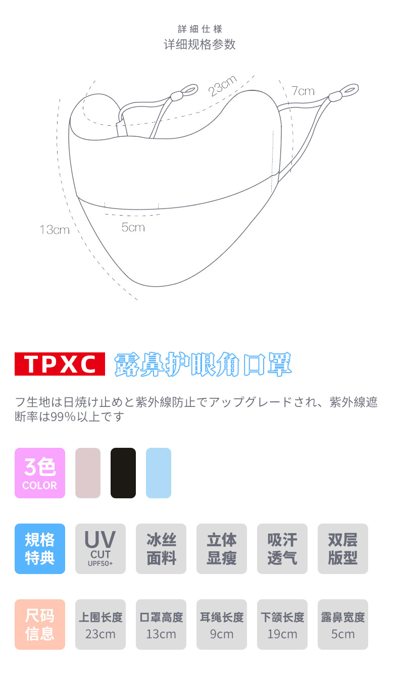 일본의 새로운 눈 앵글 선 스크린 마스크 안티 자외선 풀 페이스 입체 마스크 여성용 안티 헤이즈 통기성 콜드 웜스토어 가기