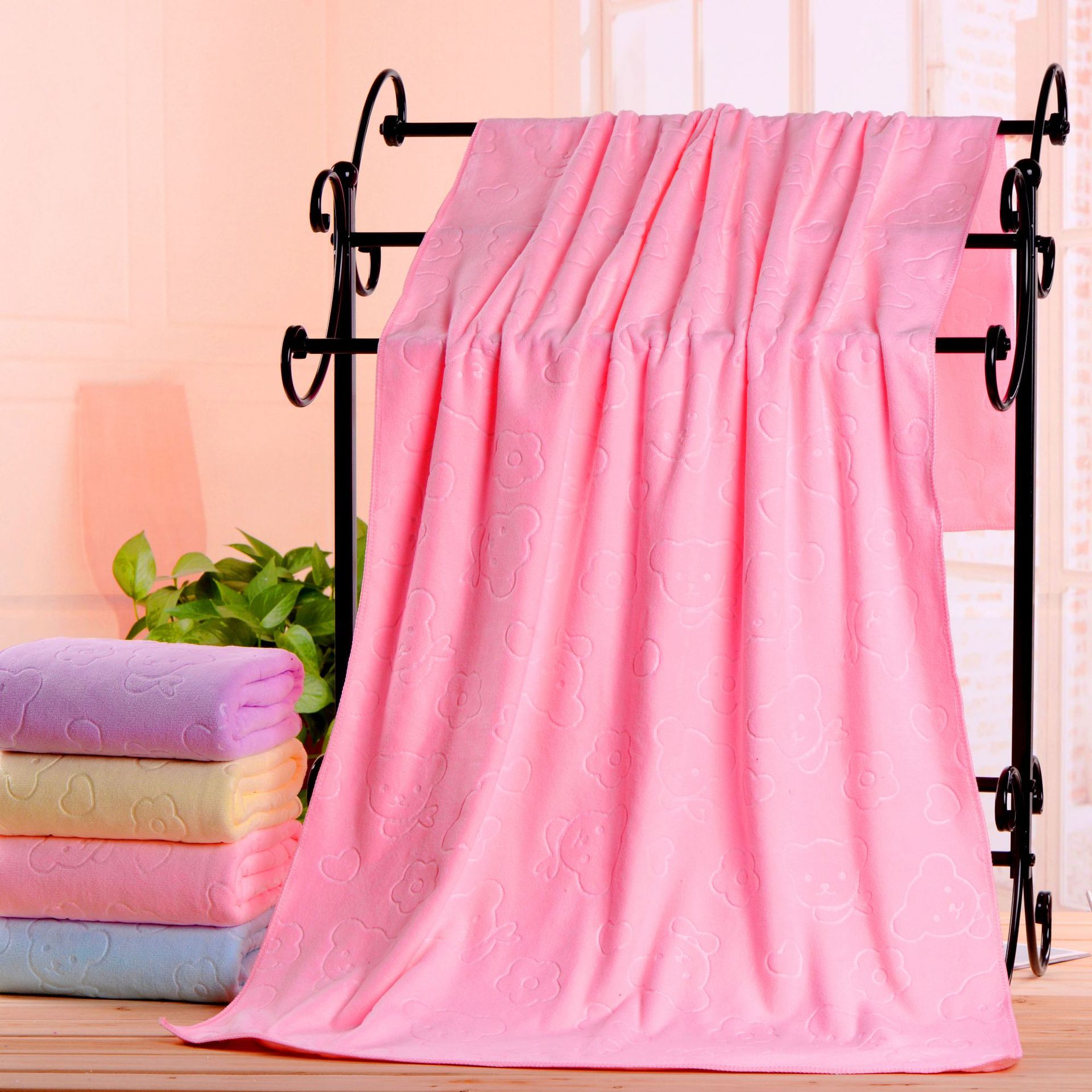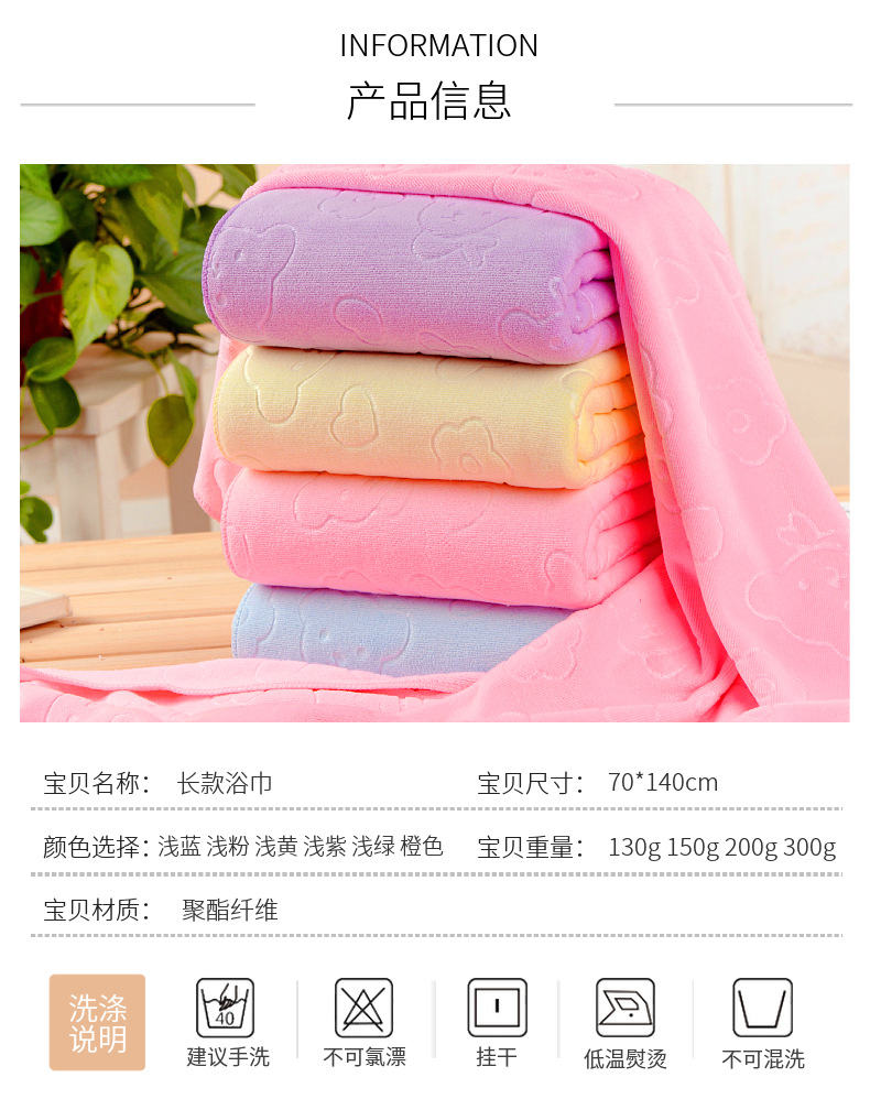 도매 크로스 보더 타월 극세사 양각 곰 목욕 타월 70*140 컬러풀 타월 선물 공장 도매스토어 가기