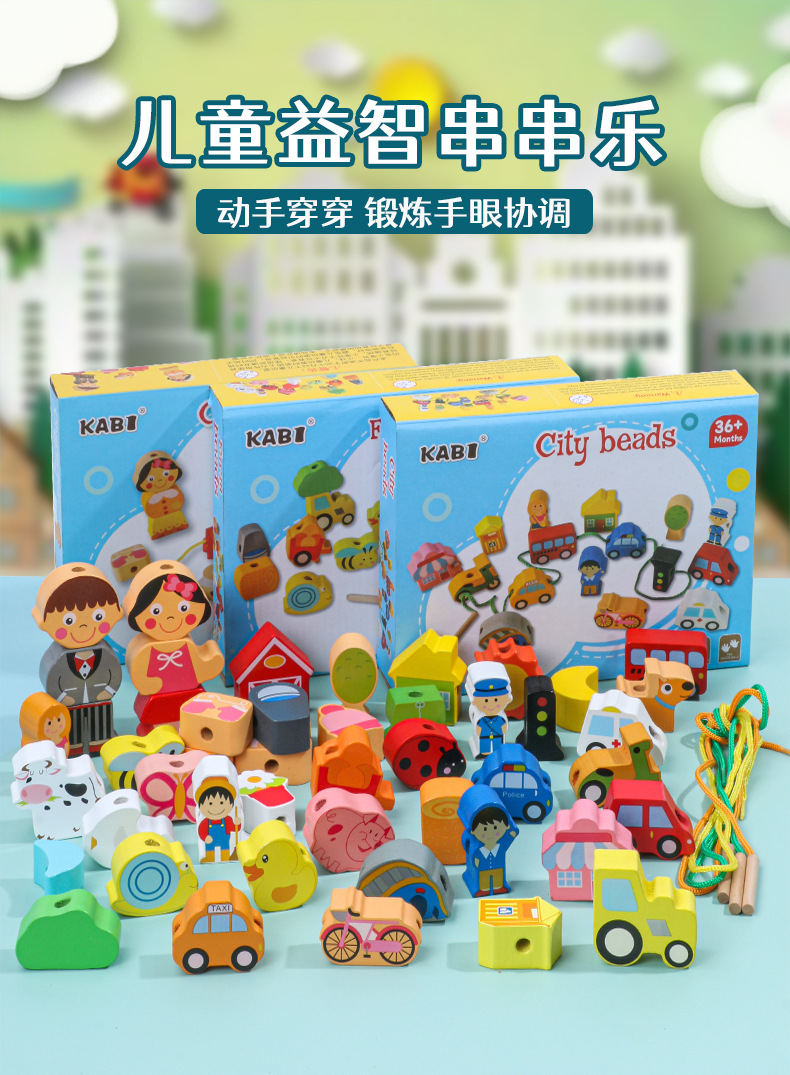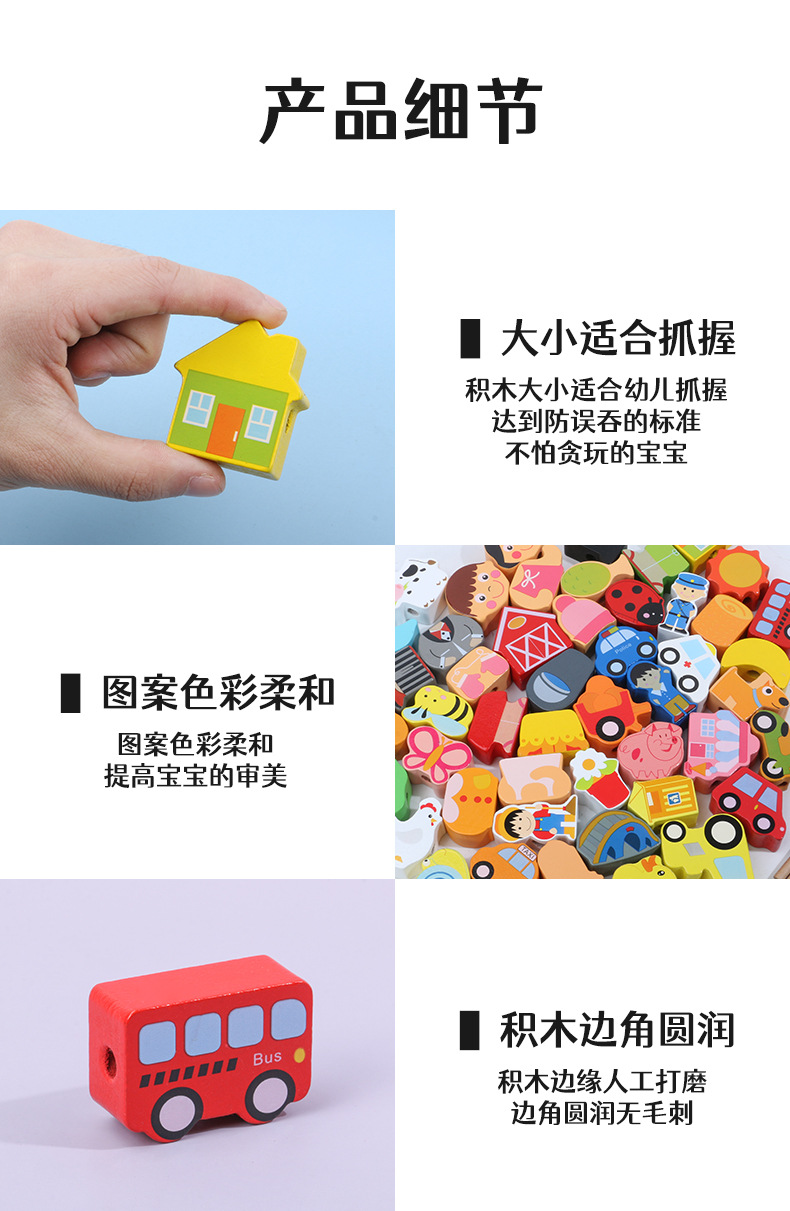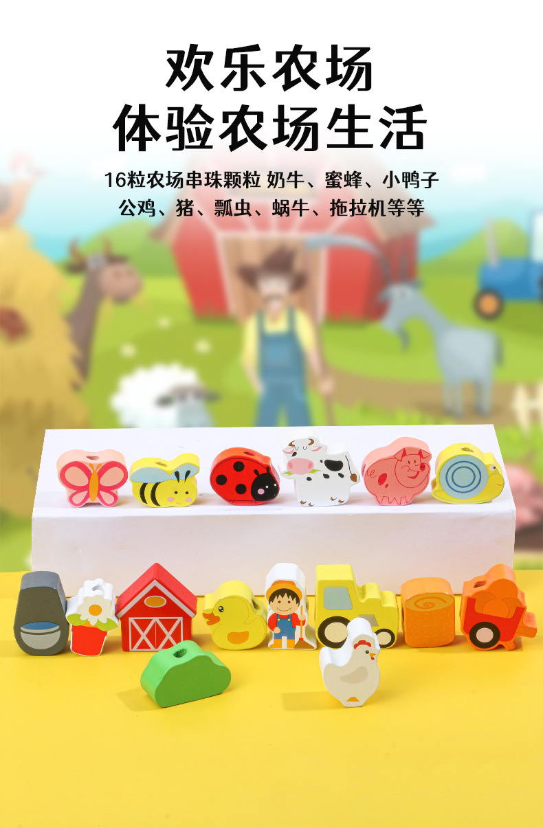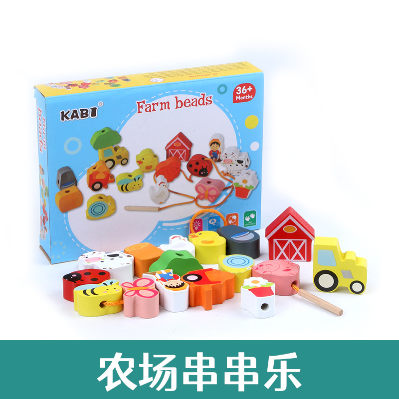 어린이 교육 구슬 장난감 동물 과일 큰 입자 농장 문자열 구슬 실 나무 장난감스토어 가기