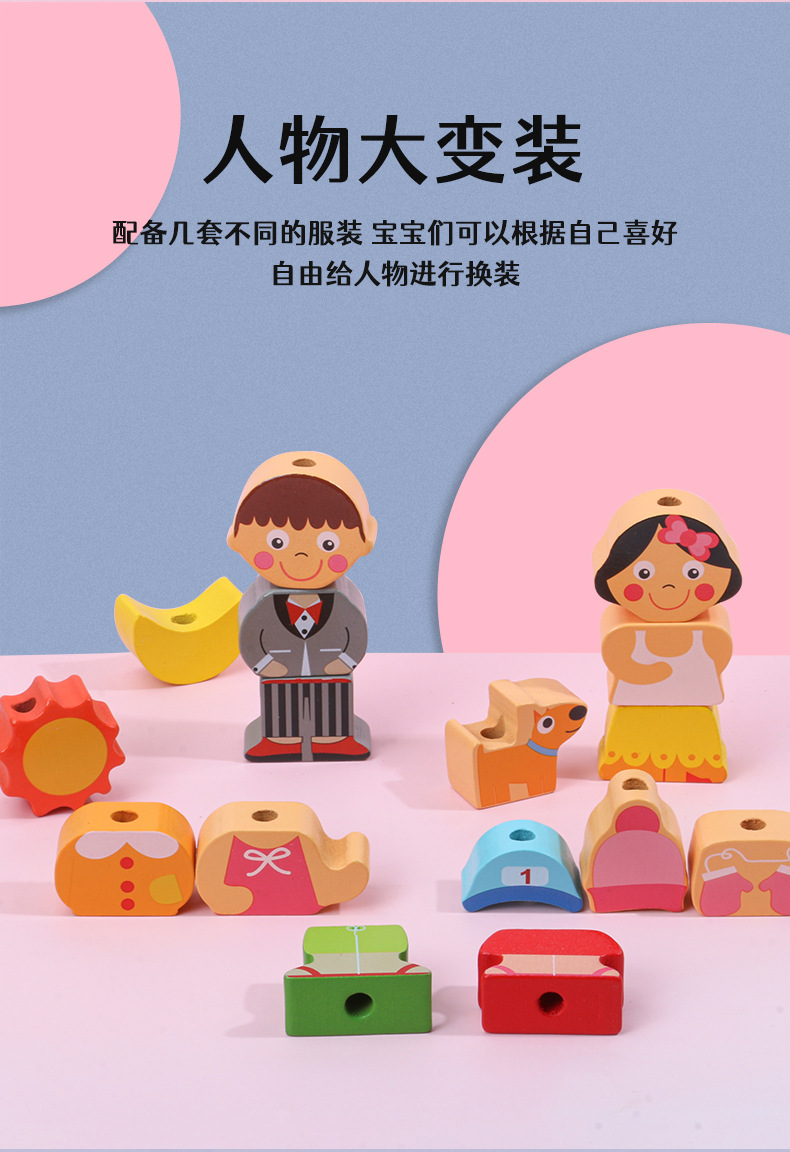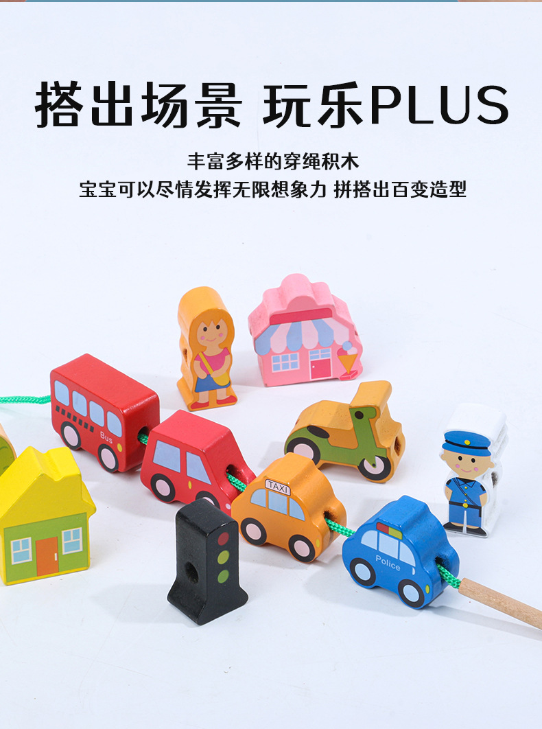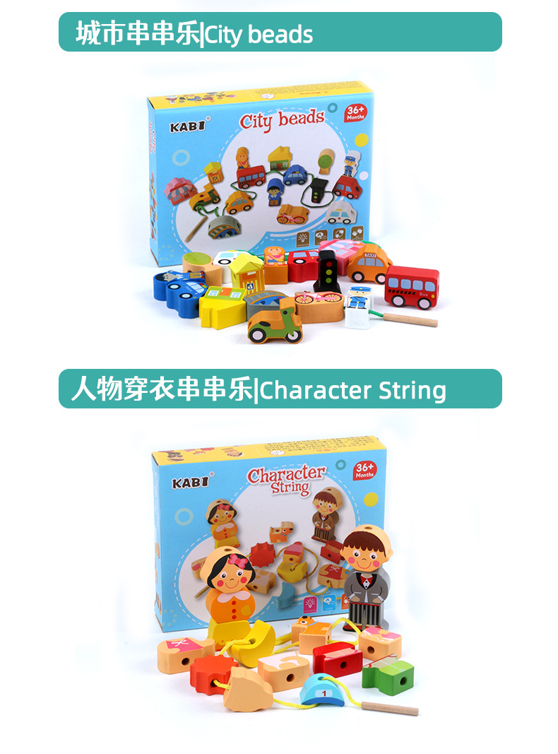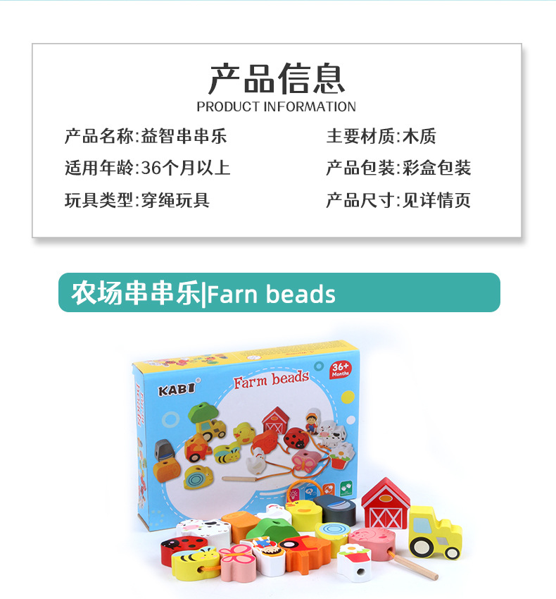 어린이 교육 구슬 장난감 동물 과일 큰 입자 농장 문자열 구슬 실 나무 장난감스토어 가기