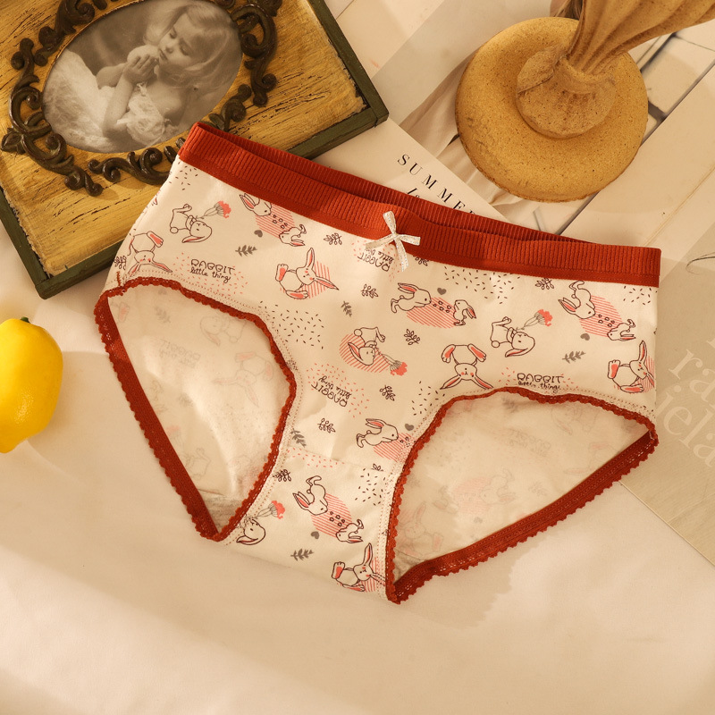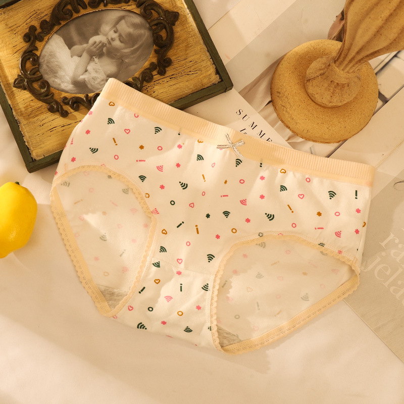 일본식 신선한 프린트 순면 속옷 여성용 컬러 매칭 탄성 미드 웨이스트 편안한 통기성 여아 팬티스토어 가기