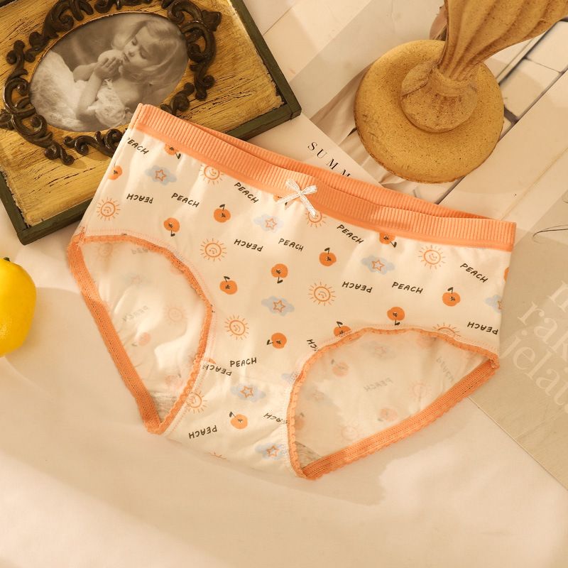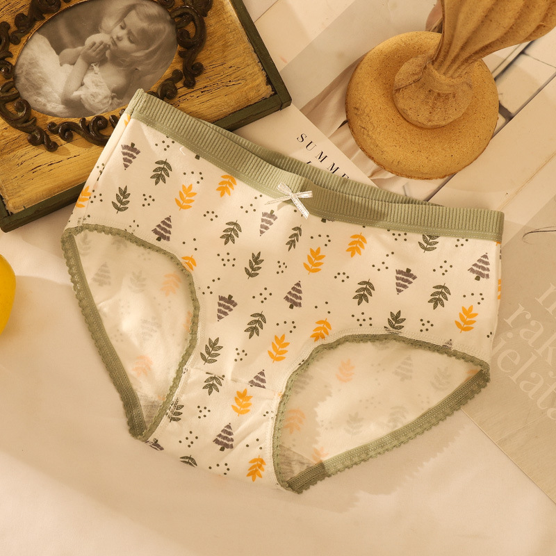 일본식 신선한 프린트 순면 속옷 여성용 컬러 매칭 탄성 미드 웨이스트 편안한 통기성 여아 팬티